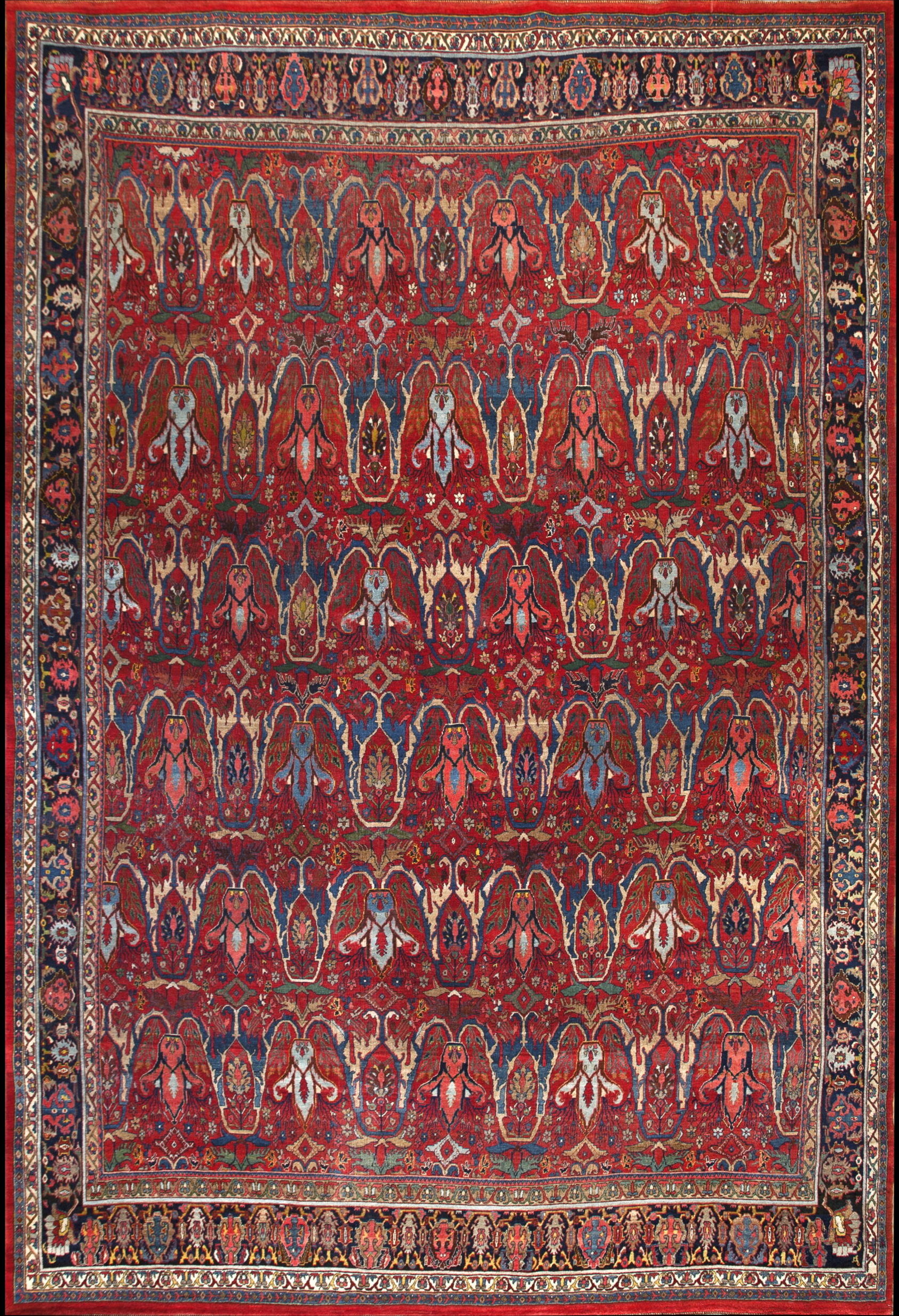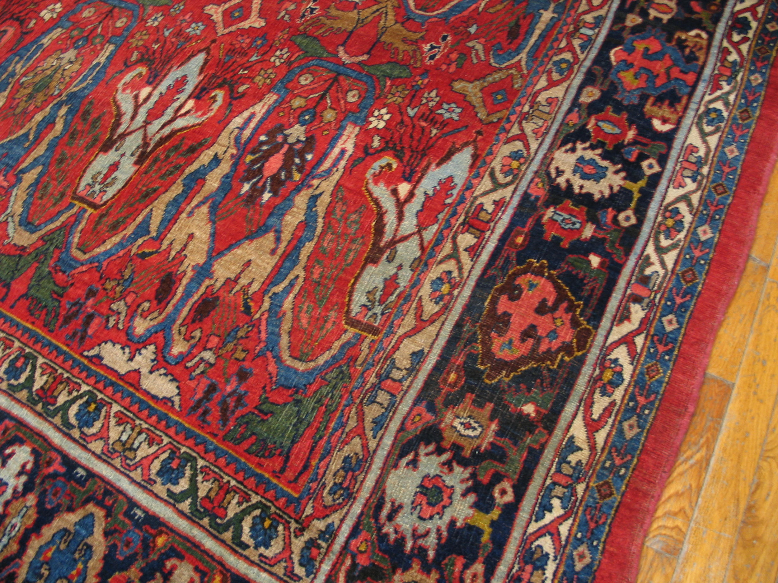 The highly detailed composition suggests a sophisticated provenance, likely from a master weaver’s atelier. The meticulous hand-knotting and carefully balanced color transitions exemplify the quality standards expected of exceptional antique rugs from the turn of the century.