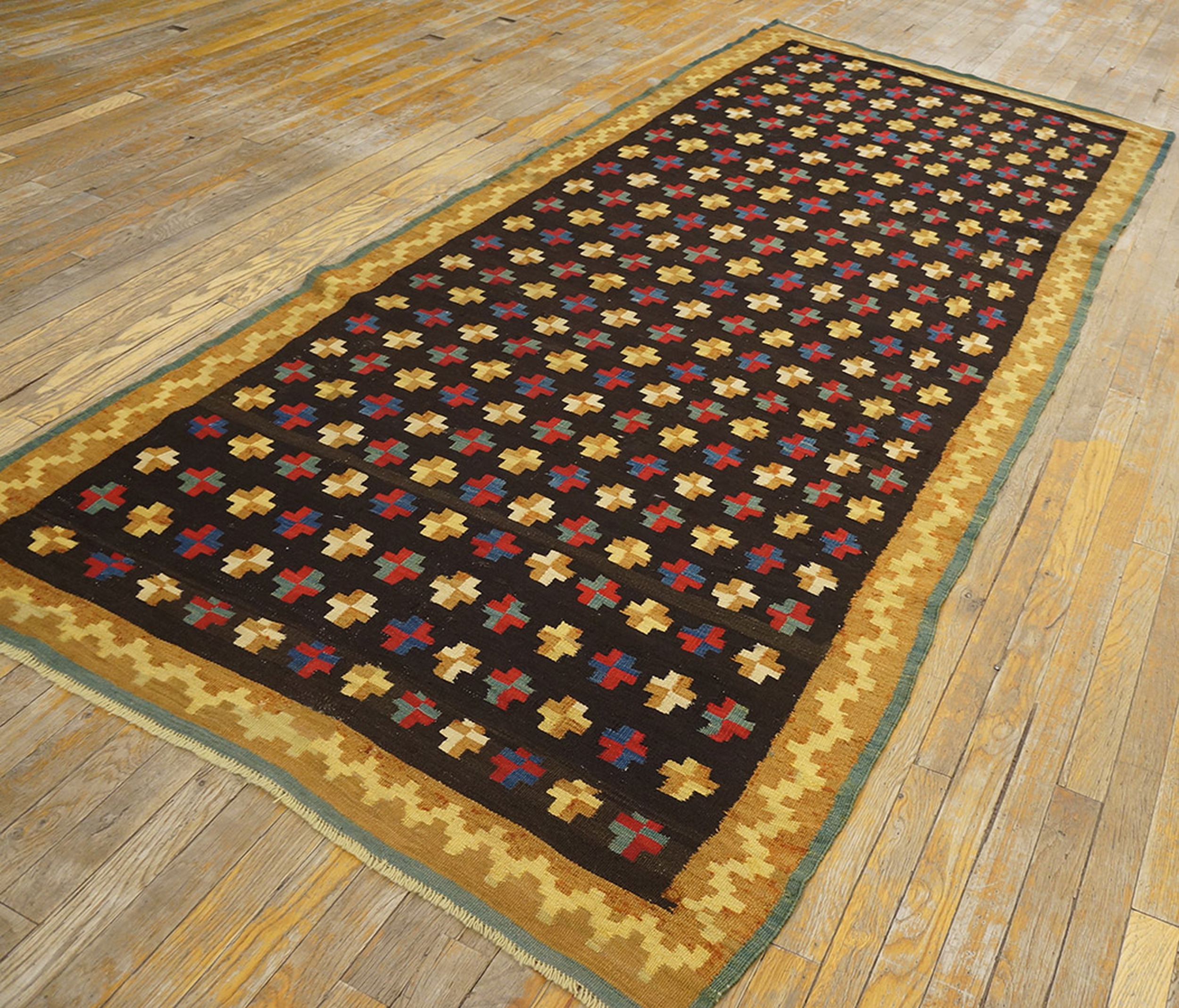 The narrow format and elongated proportions confirm its original use as one of the finest hallway runner rugs. Its construction is robust, featuring a tightly knotted pile that provides both durability and a luxurious texture underfoot, characteristic of pieces intended for grand European estates.