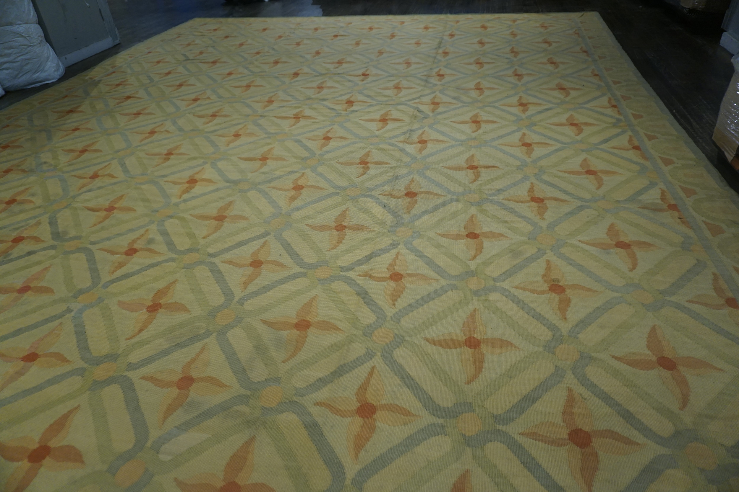 Antique Oversized Bessarabian Romanian Flat Weave Rug, Country of Origin: Romanian, Circa Date: 1920s. This exceptional antique rug, woven in Rugs from Romanian during the early Soviet era, presents a striking example of the Europeanized design aesthetic popular in Bessarabia. Its flat weave construction emphasizes the graphic clarity of the repeating motif, offering a lightness rarely found in pile carpets.