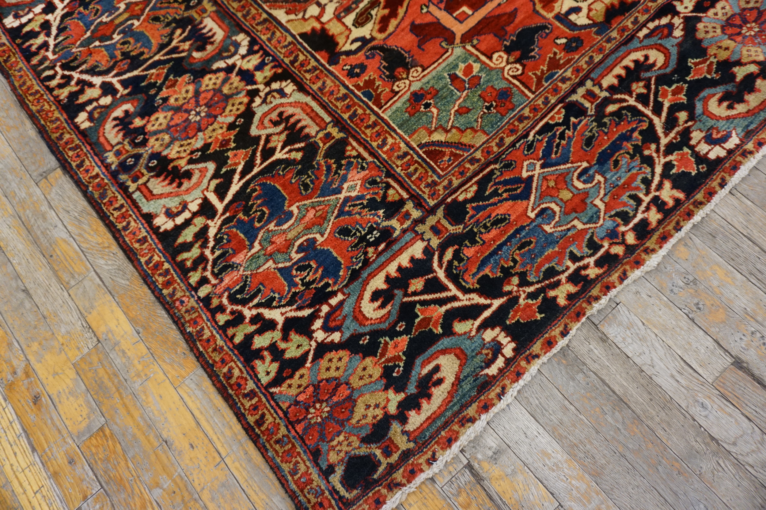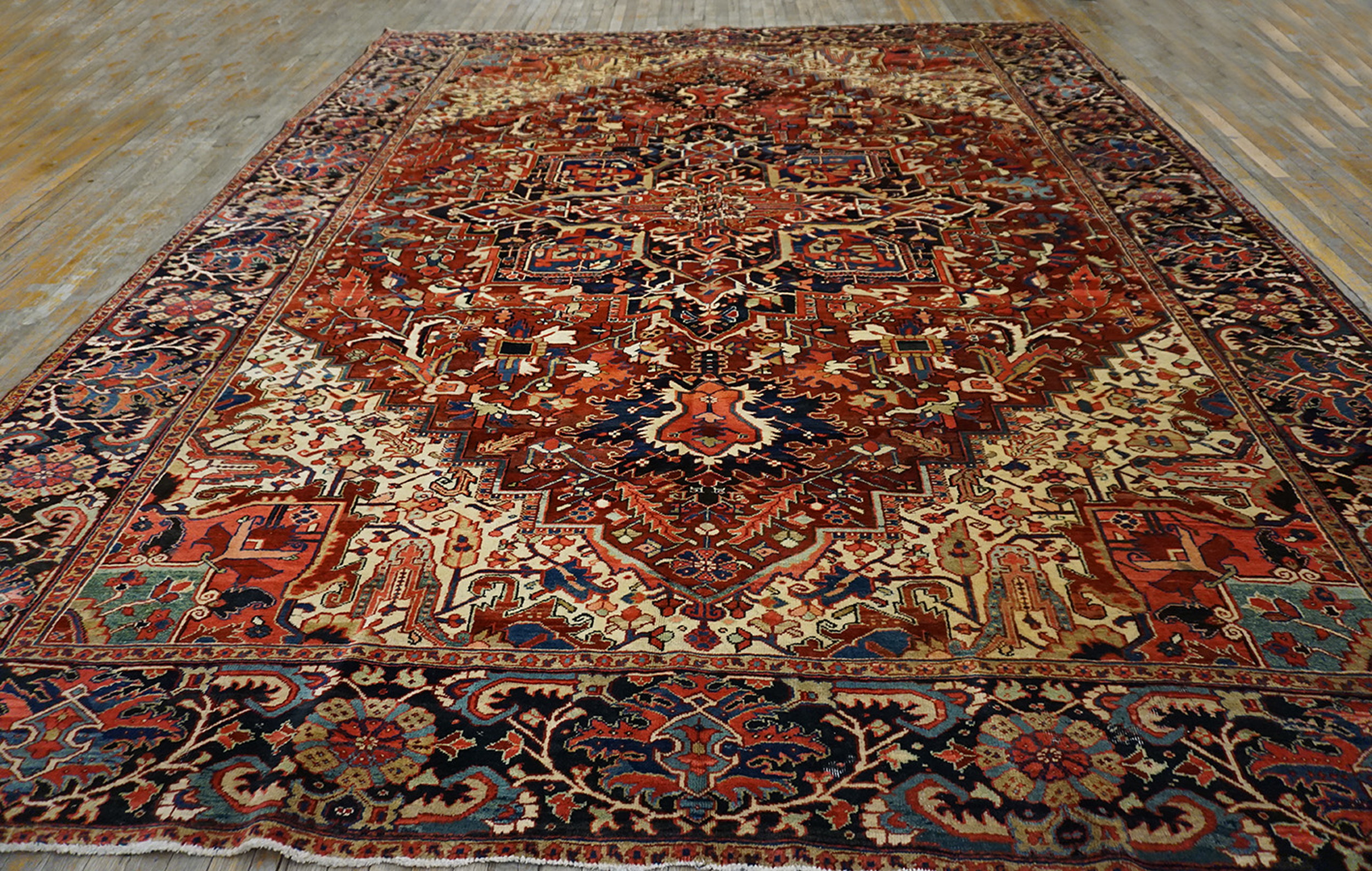 Woven with durable wool on a cotton foundation, this piece was designed to endure, making it an ideal choice for high-traffic areas. Its substantial dimensions classify it as a true room size carpet, capable of anchoring a large living space or formal dining room with historical authenticity and vibrant color. This Heriz remains a timeless statement of Persian artistry.