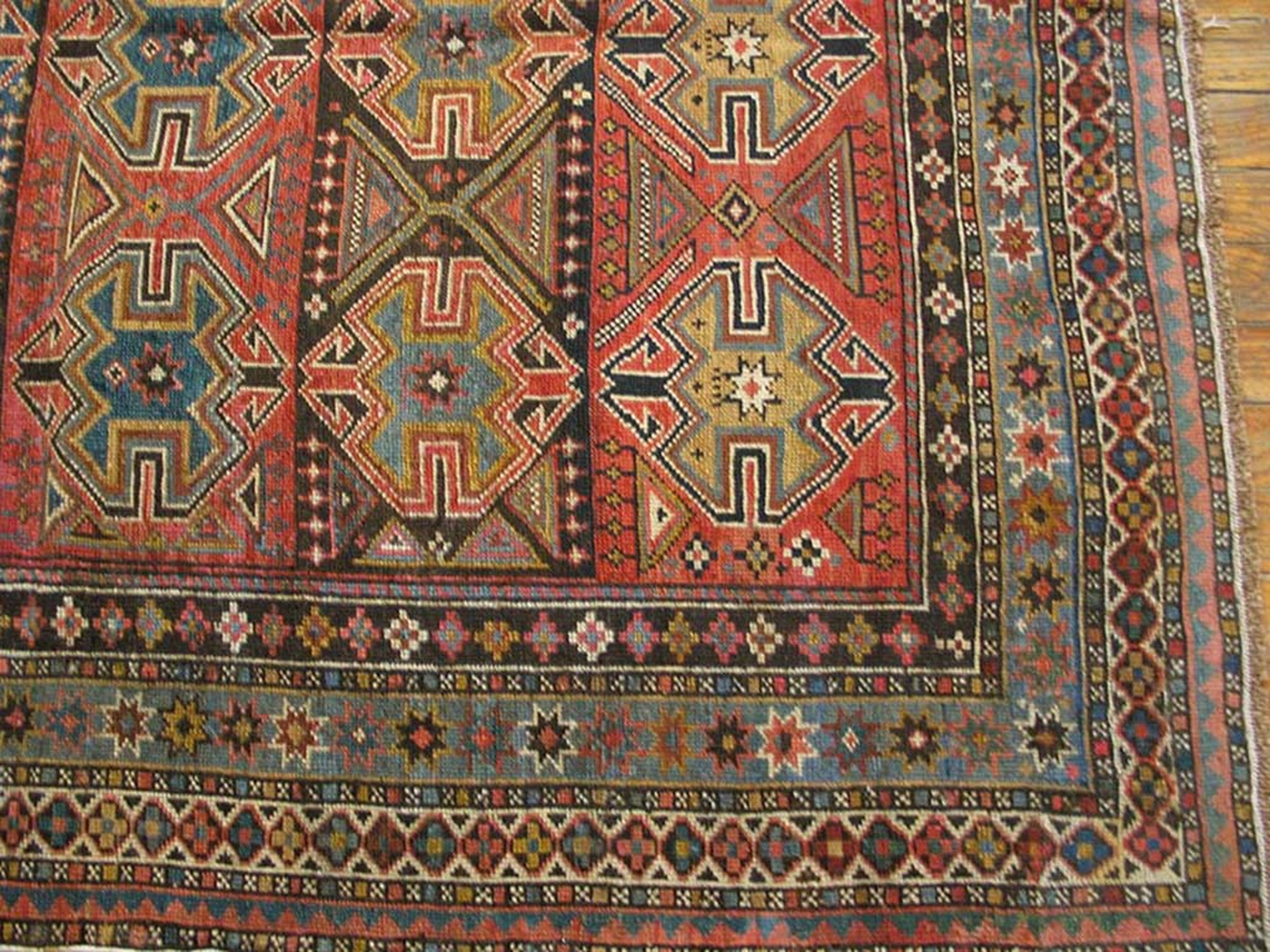Antique Caucasian Caucasian 1890s Rug, Country of Origin: Caucasus, Circa Date: 1890s. This exceptional textile is a vibrant example of late 19th-century weaving, characterized by the bold geometry and saturated dyes typical of the region. It stands as a testament to the enduring artistry found in the finest antique rugs collected today.