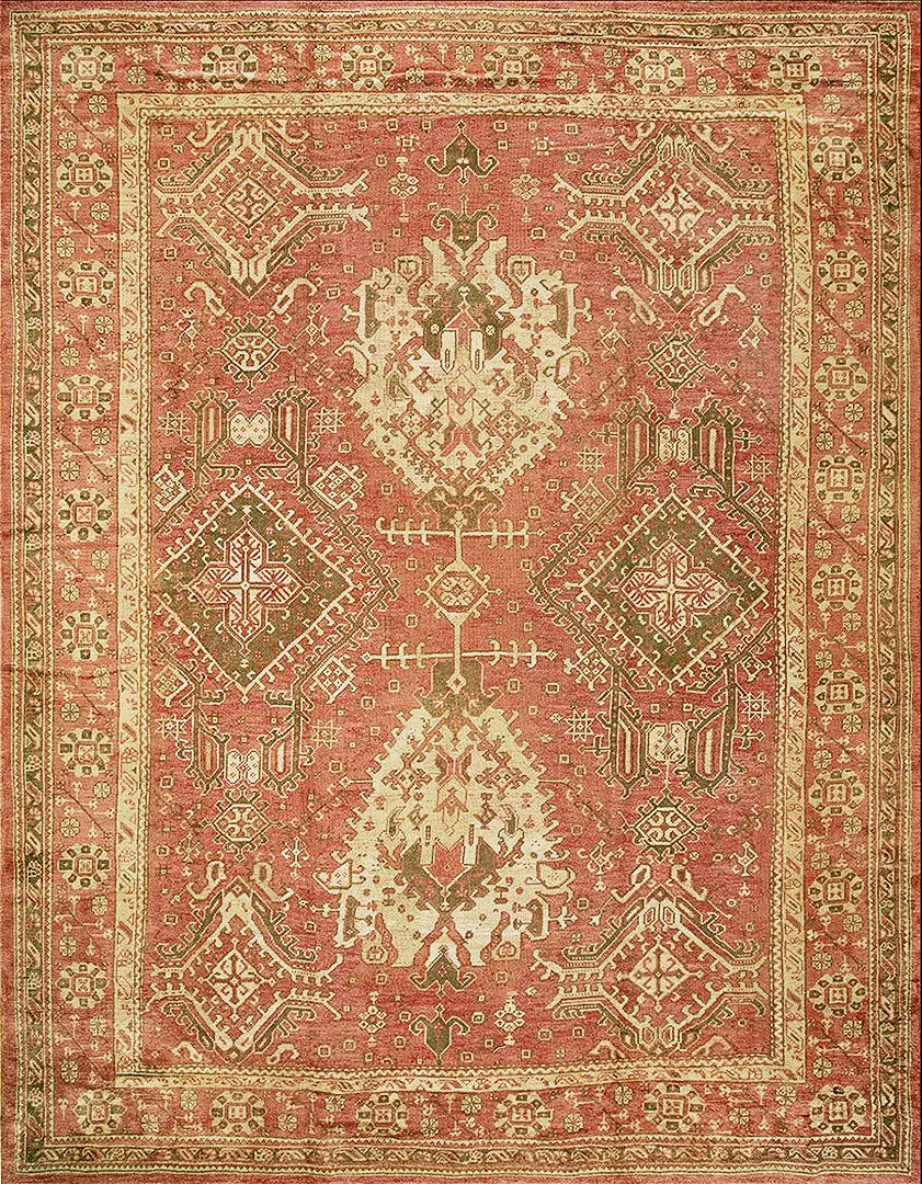 Whether used as a focal point under key furniture groupings or layered into a broader design scheme, this antique Oushak rug delivers texture, presence, and enduring style.