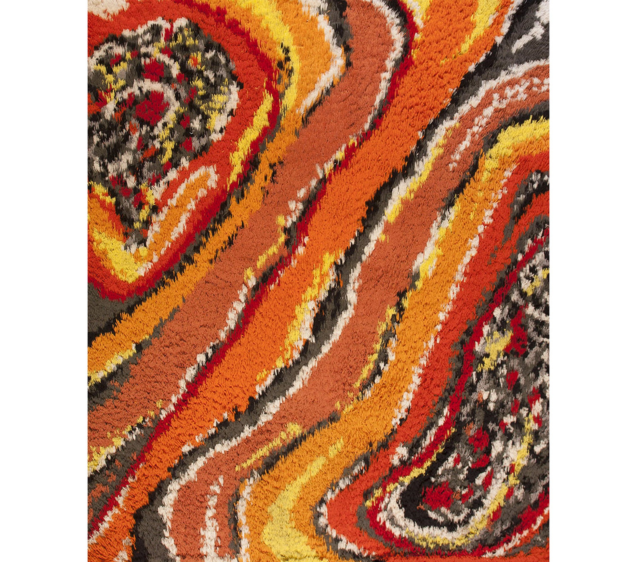 Crafted from robust wool, the long pile characteristic of the Rya technique ensures both luxurious softness underfoot and exceptional durability. This piece represents the finest craftsmanship found among our curated collection of vintage area rugs, offering collectors a rare opportunity to acquire a functional piece of high-style design history.
