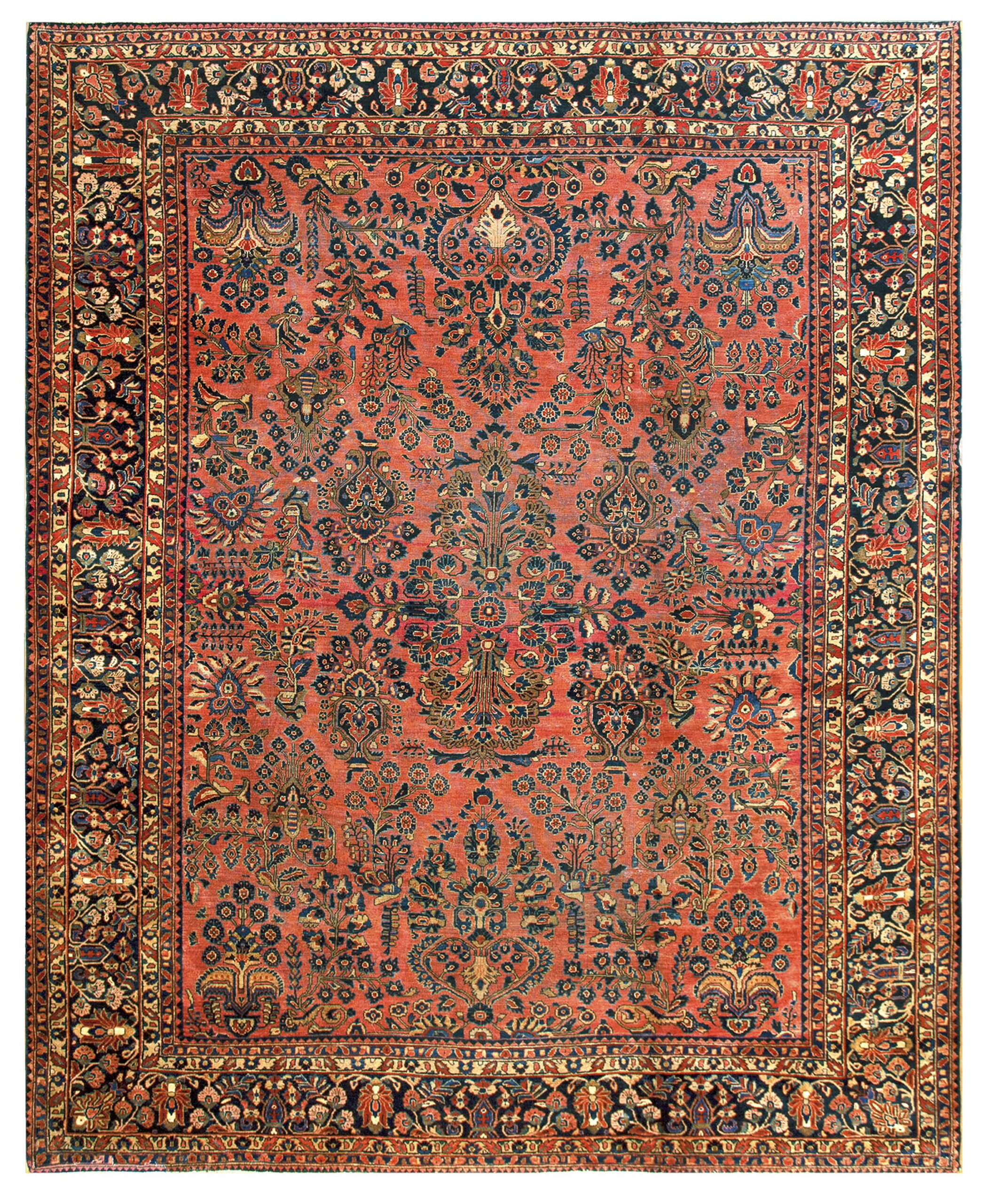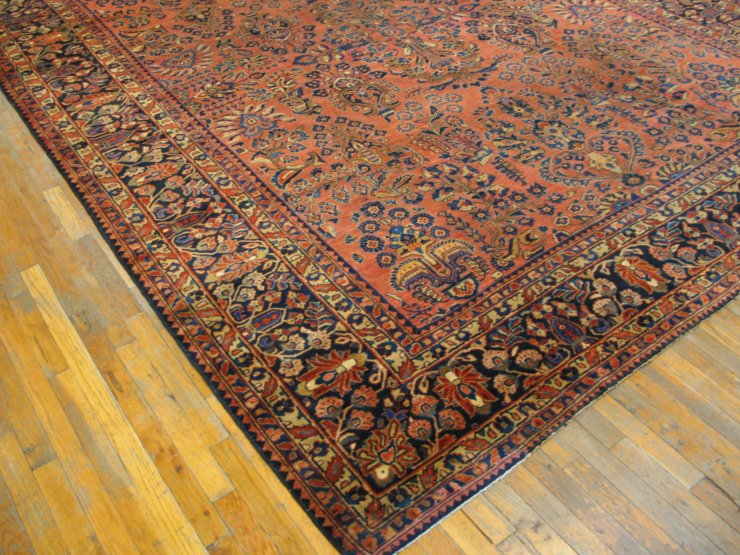 Antique Sarouk Room Size Wool Multicolor Rug, Circa Date: 1920s. This exceptional example of the classic Sarouk style showcases the superb craftsmanship typical of Persian weaving during the early 20th century. The dense wool pile and robust construction confirm its enduring quality, making it a highly desirable piece for collectors and designers alike.