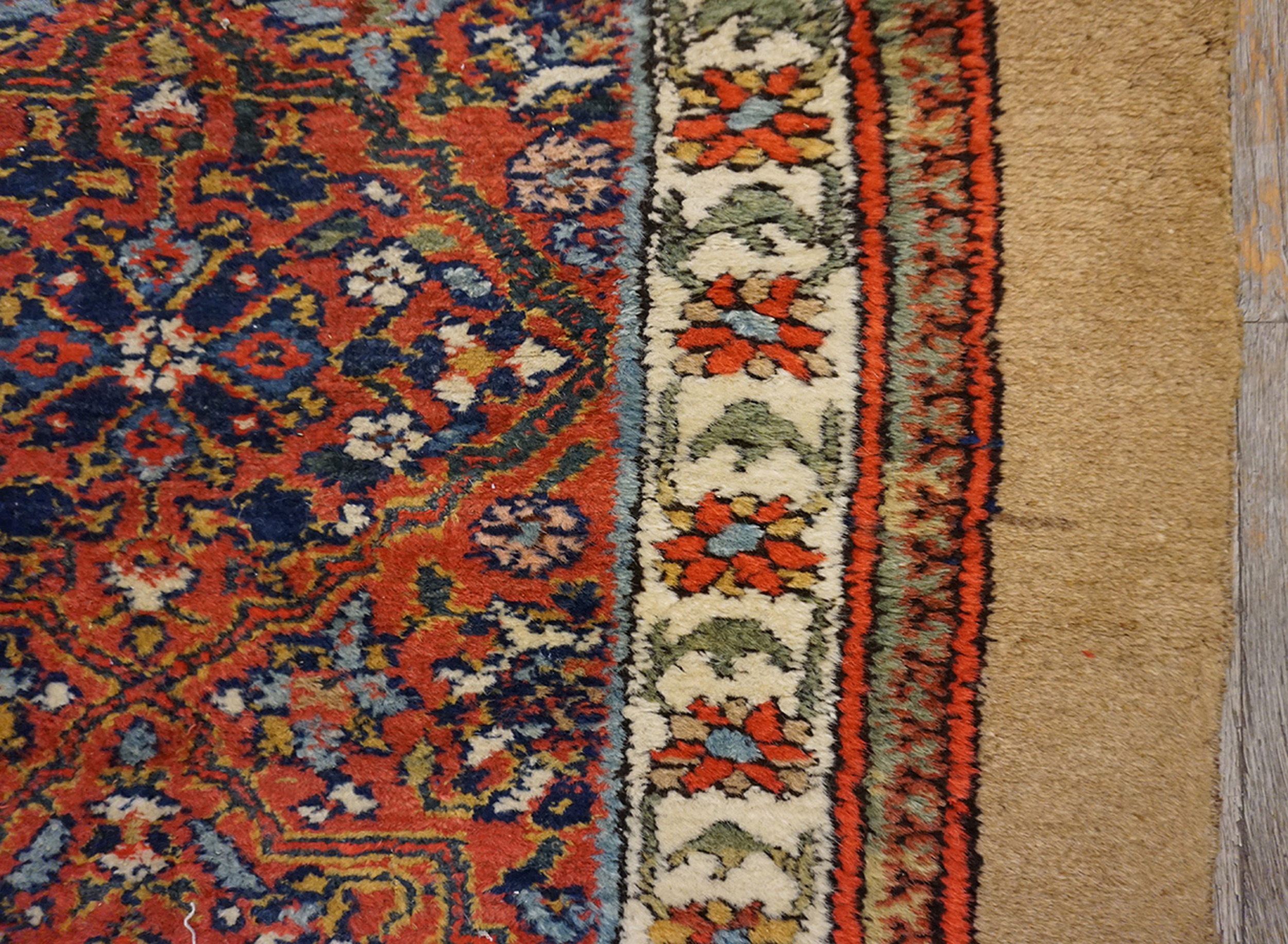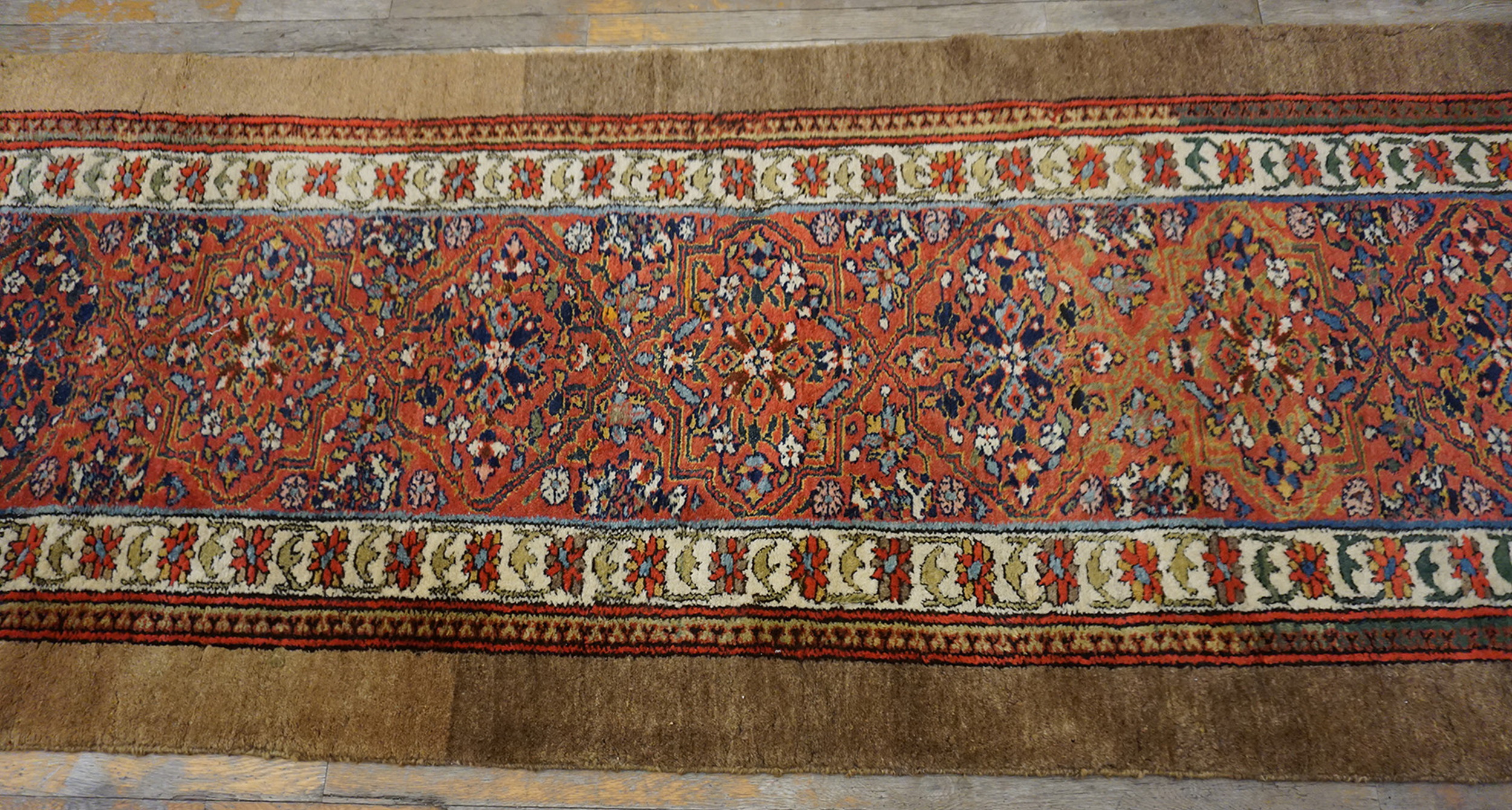 Antique Serab Large Hallway Runner Wool Coral Rug, Circa Date: 1880s. This exceptional Serab runner, hand-knotted in the late 19th century, represents the finest weaving traditions of Northwest Persia. Its sturdy wool foundation and finely executed knotting speak to the durability and artistry characteristic of these highly sought-after antique rugs.