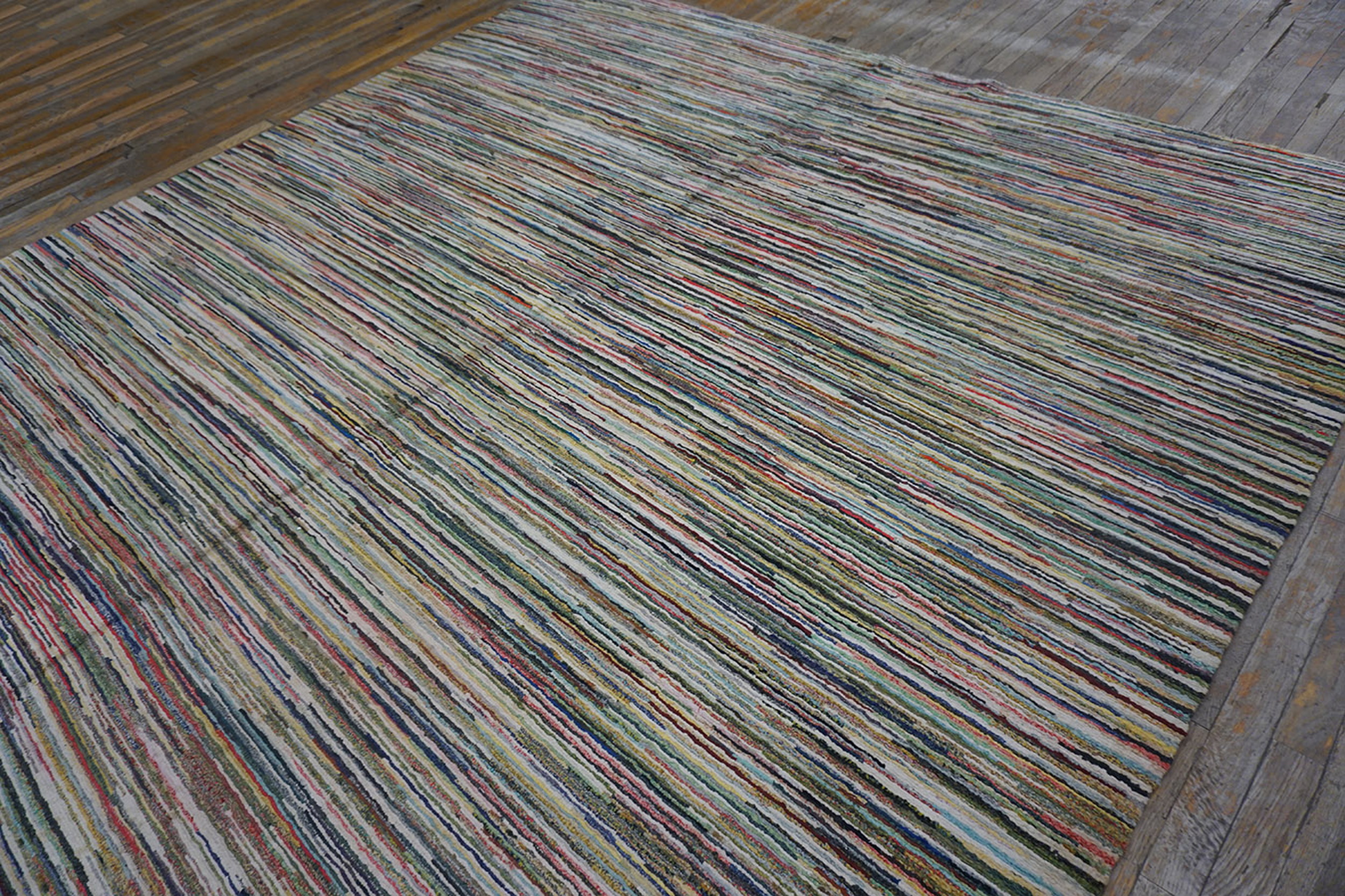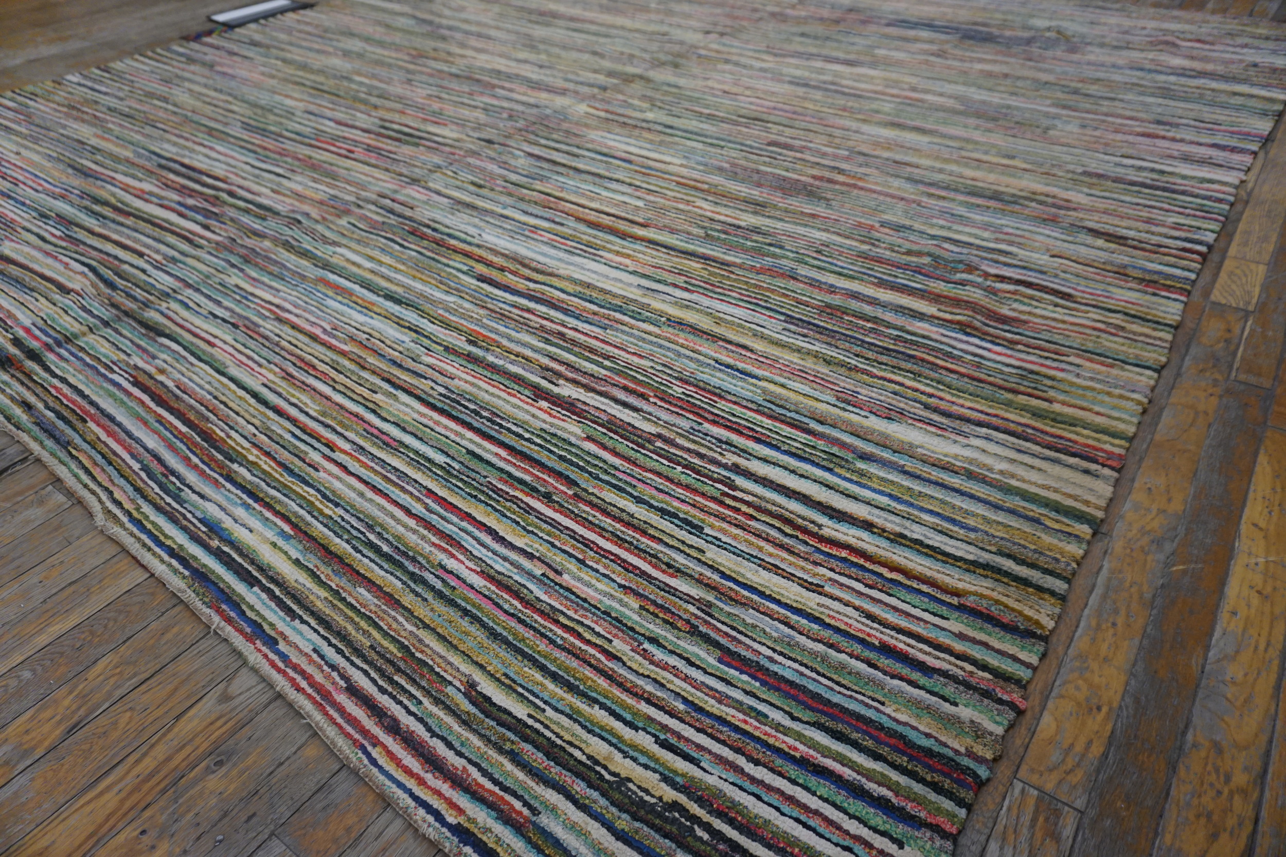 Woven during a period of significant artistic transition in American craft, this piece is a testament to early 20th-century textile innovation. Its substantial dimensions allow it to function perfectly as one of our premier room size rugs, providing a foundation of texture and color suitable for contemporary or minimalist interiors.