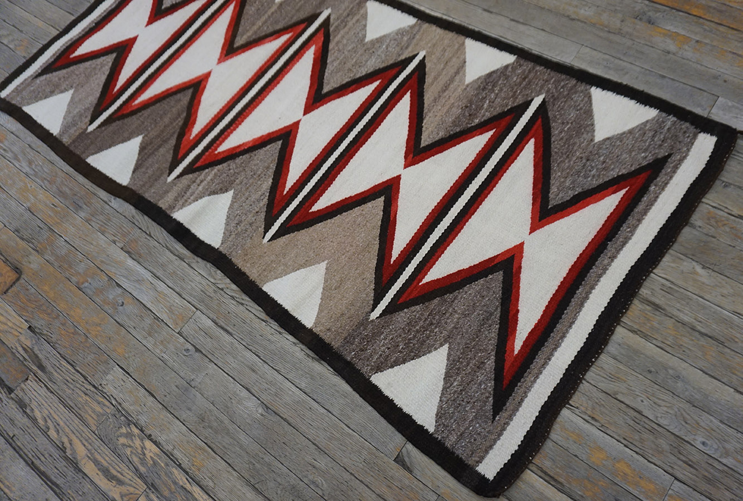 Rectangle Navajo 1925 Small Scatter Size Wool Flat Weave Gray Antique Native American Rug, Circa Date: 1925. This exceptional example of early 20th-century Native American weaving represents the enduring legacy of the Navajo textile tradition. Its flat-weave construction emphasizes the purity of the design, making it a highly desirable piece among antique rugs.