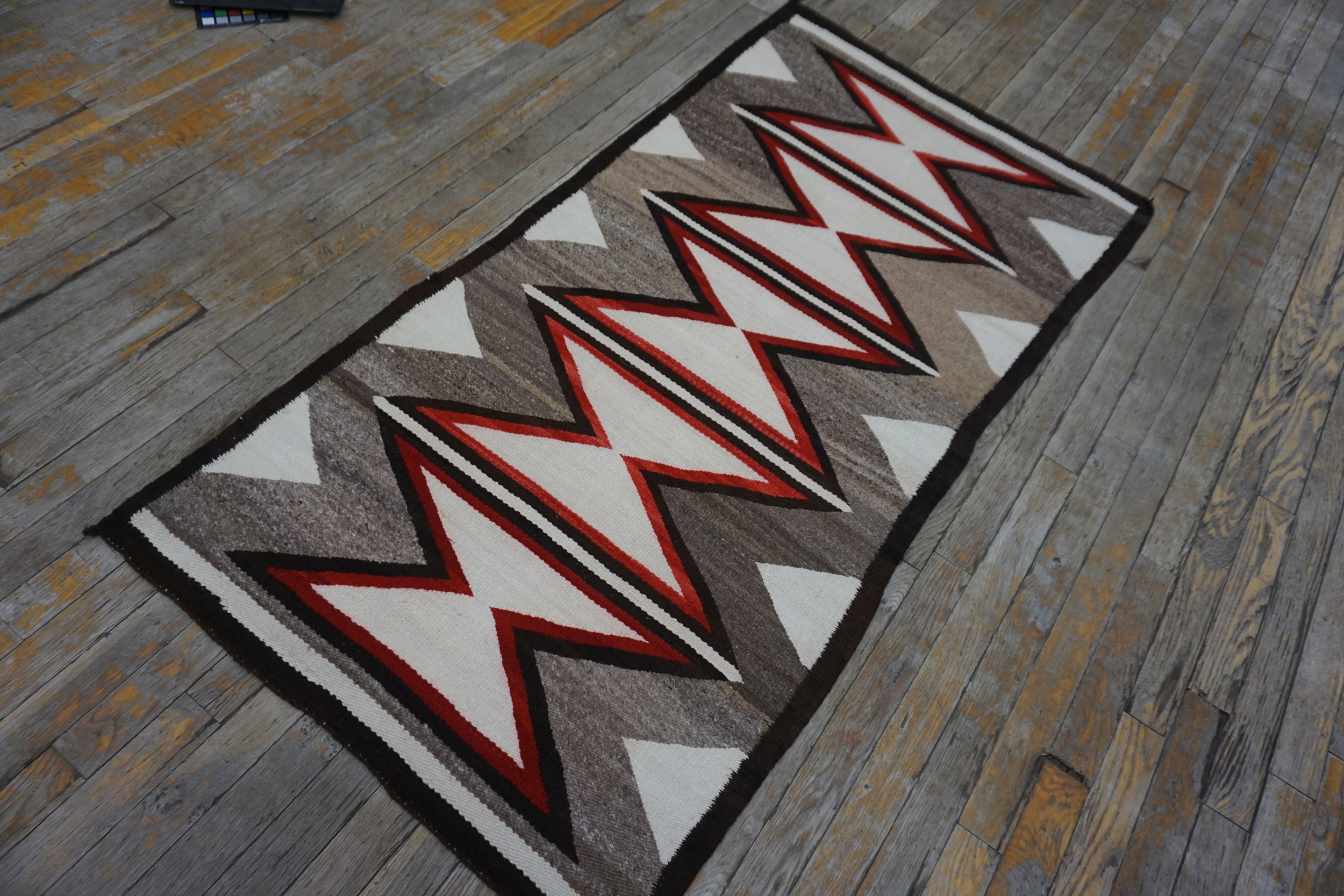 Measuring a convenient small scatter size, this textile is perfectly suited for placement in transitional spaces, hallways, or as a striking wall hanging where its graphic intensity can be fully appreciated. It remains a testament to the sophisticated artistry of Southwestern weaving.