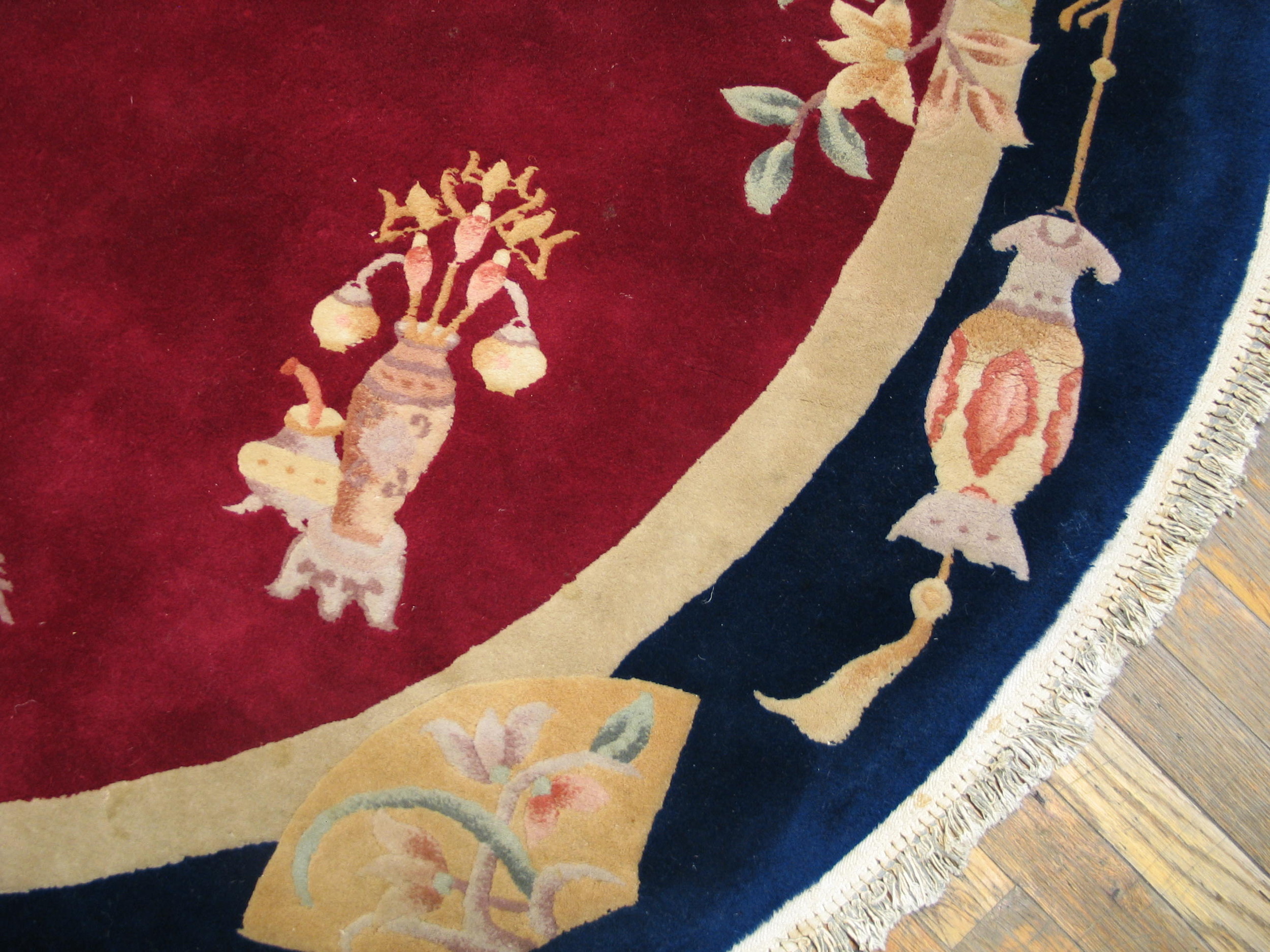 Antique Solid Red Color Open Field Round Chinese Art Deco Rug