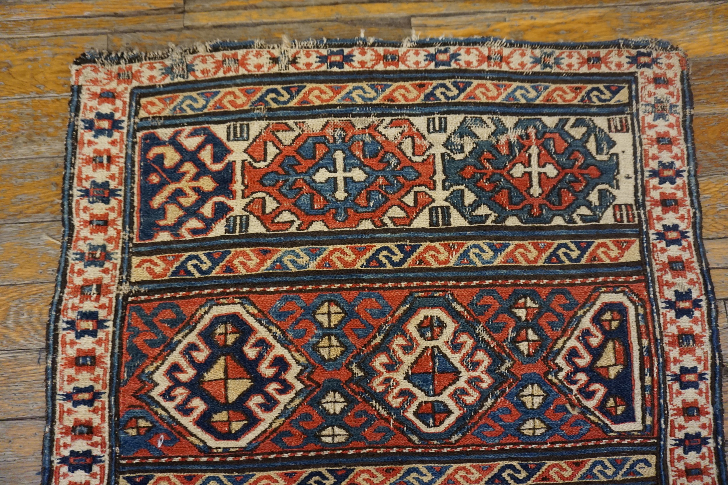 Antique Soumak Small Scatter Size Wool Multicolor Rug, Country of Origin: Persia, Circa Date: 1890s. This exceptional example of flat-woven artistry showcases the enduring strength of tribal Persian weaving. The Soumak technique, known for its looped, brocaded structure, creates a highly durable textile with a distinctive, textural surface that differs significantly from pile-woven antique rugs.