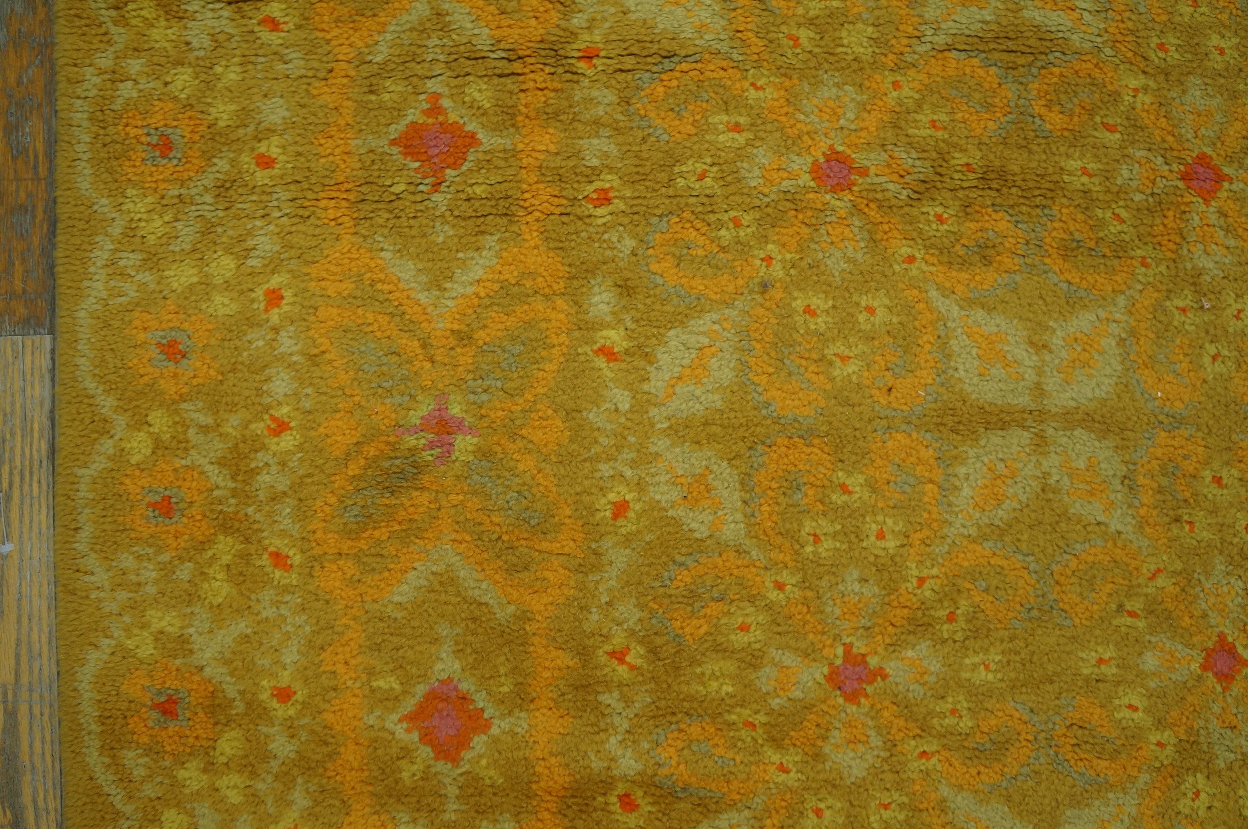 While many Spanish pieces from this era were woven in broadloom sizes, this particular dimension suggests versatility in placement. Its narrow, elongated form makes it an excellent choice for central living areas or perhaps as a statement piece in place of traditional hallway runner rugs. This carpet remains a testament to Spain’s enduring contribution to 20th-century textile artistry.