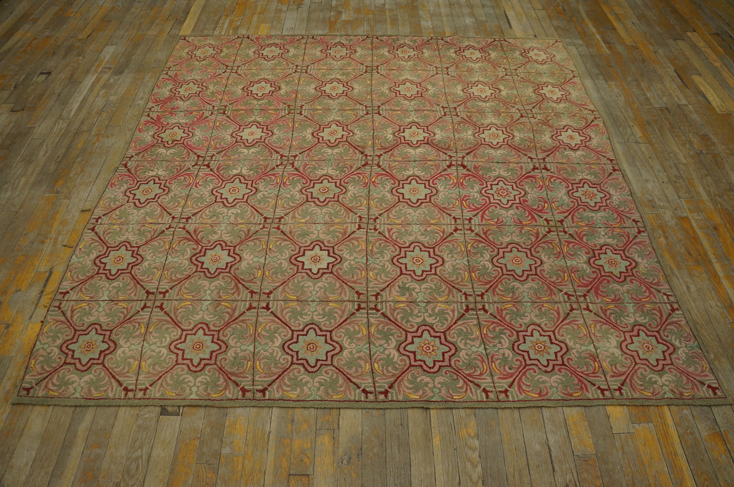 Antique Square Shape Allover Geometric Pattern American Hooked Rug