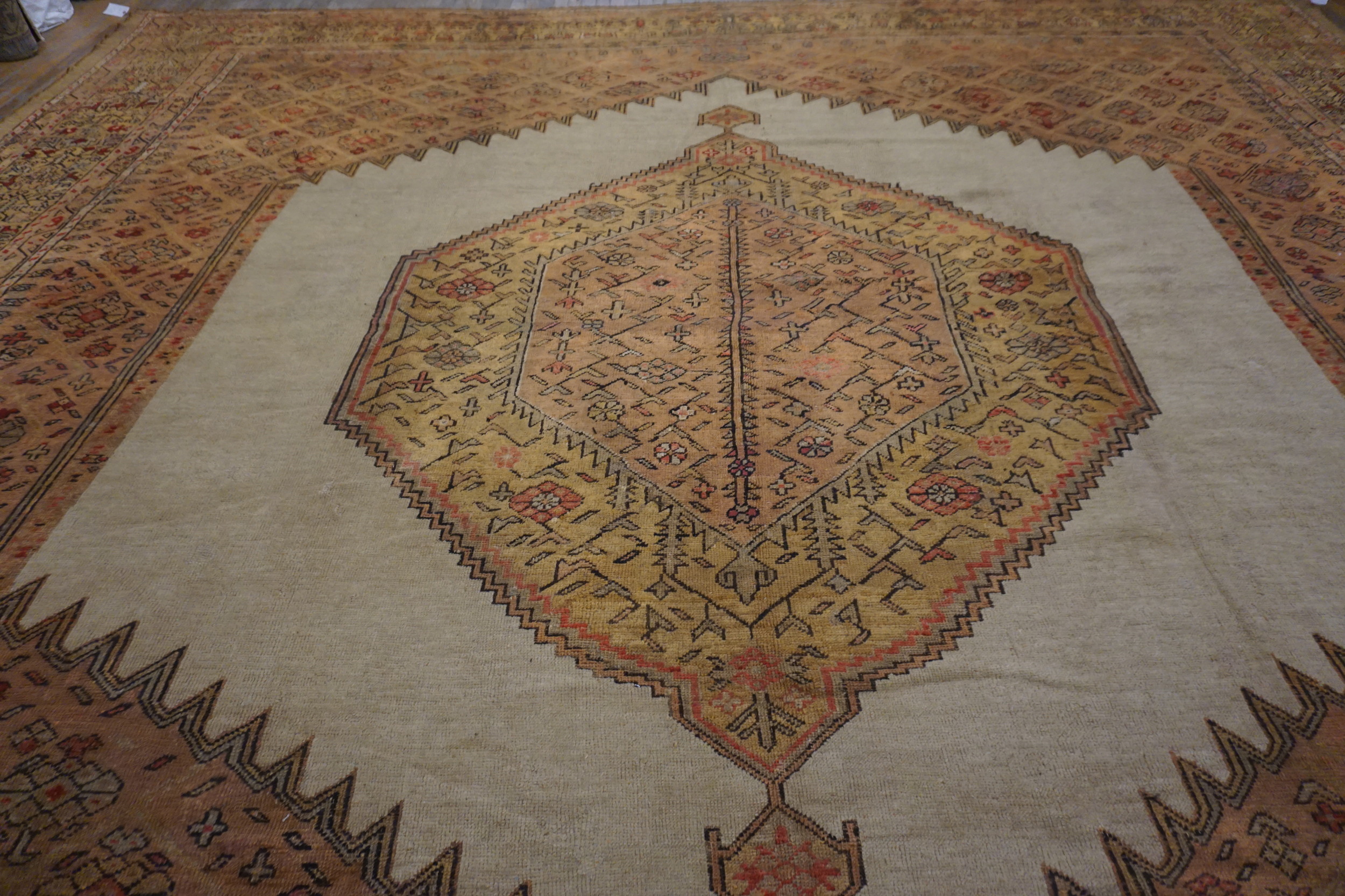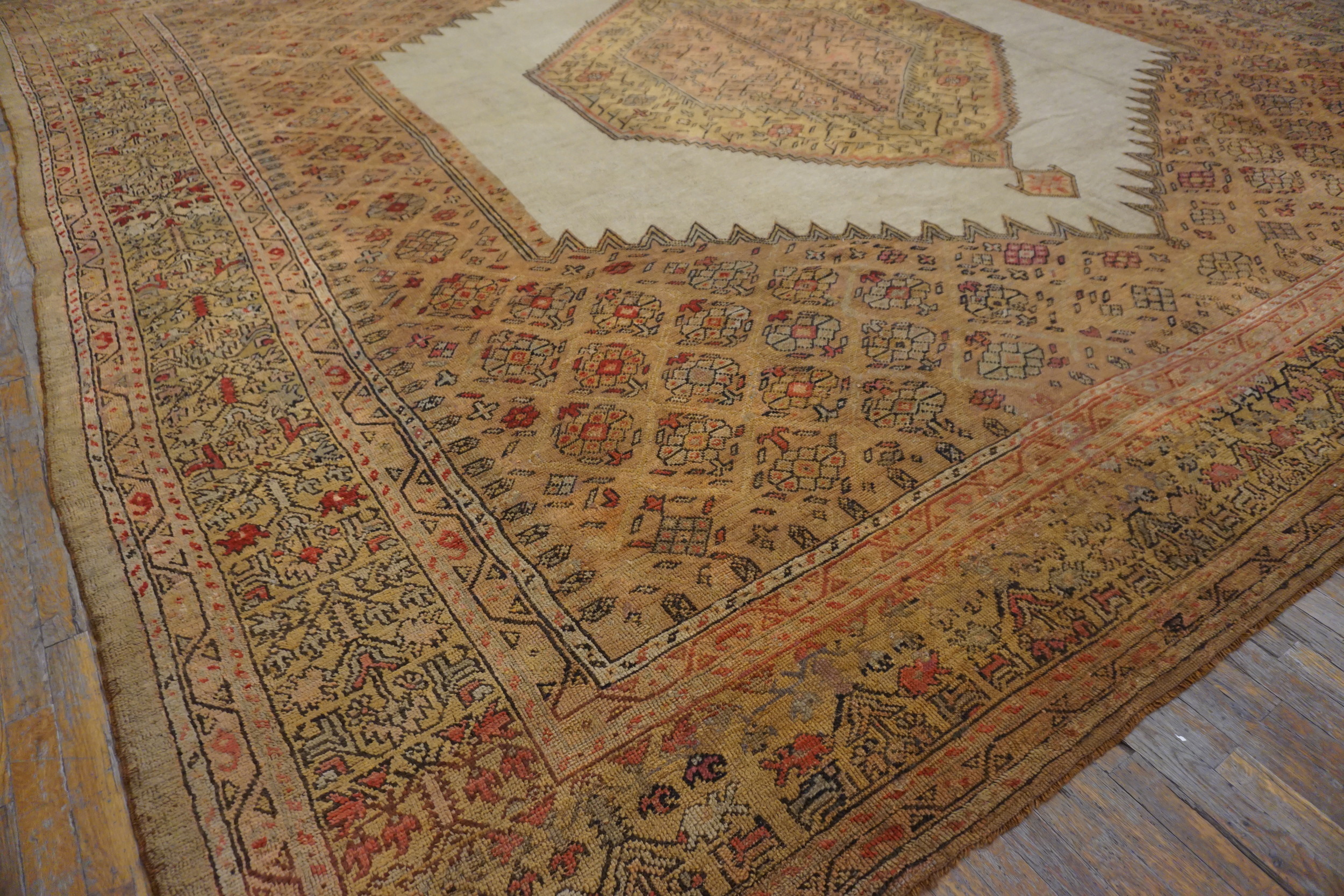 Measuring generously, this square format makes it an ideal centerpiece for grand reception areas or large living spaces, functioning as a true room size statement. The enduring quality and unique coloration ensure that this 1890s masterpiece remains a highly sought-after example of historical textile art, capable of anchoring a contemporary or traditional interior with unparalleled elegance.