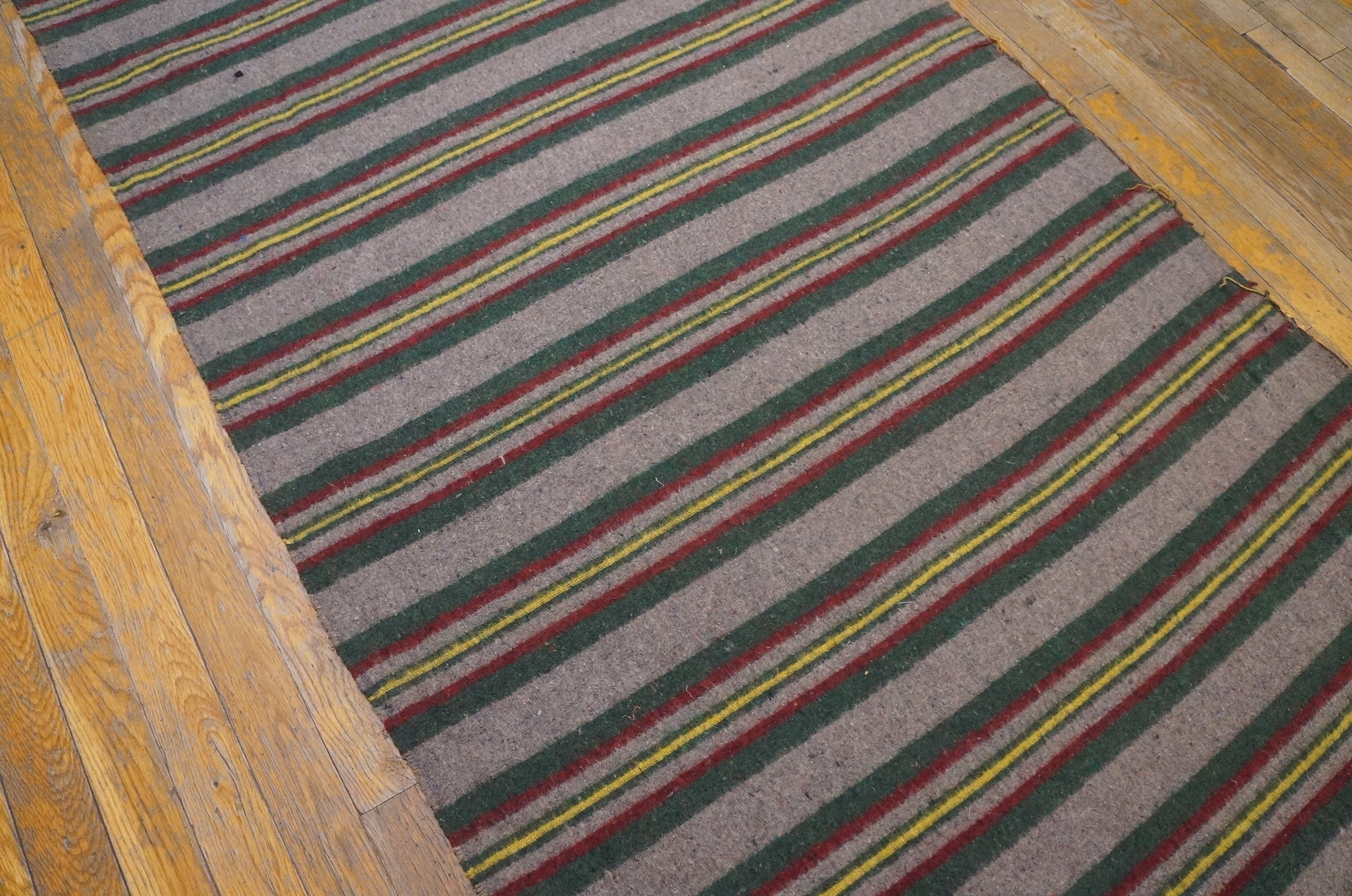 Antique American Rag Flat Weave Rug, Country of Origin: American USA Rugs, Circa Date: 1930s. This remarkable textile is a prime example of the utilitarian yet decorative pieces produced in the American USA Rugs tradition during the Depression era. Its construction as an American Rag Rug speaks to a resourceful, handcrafted aesthetic, utilizing recycled fabric scraps woven into a durable flat weave.