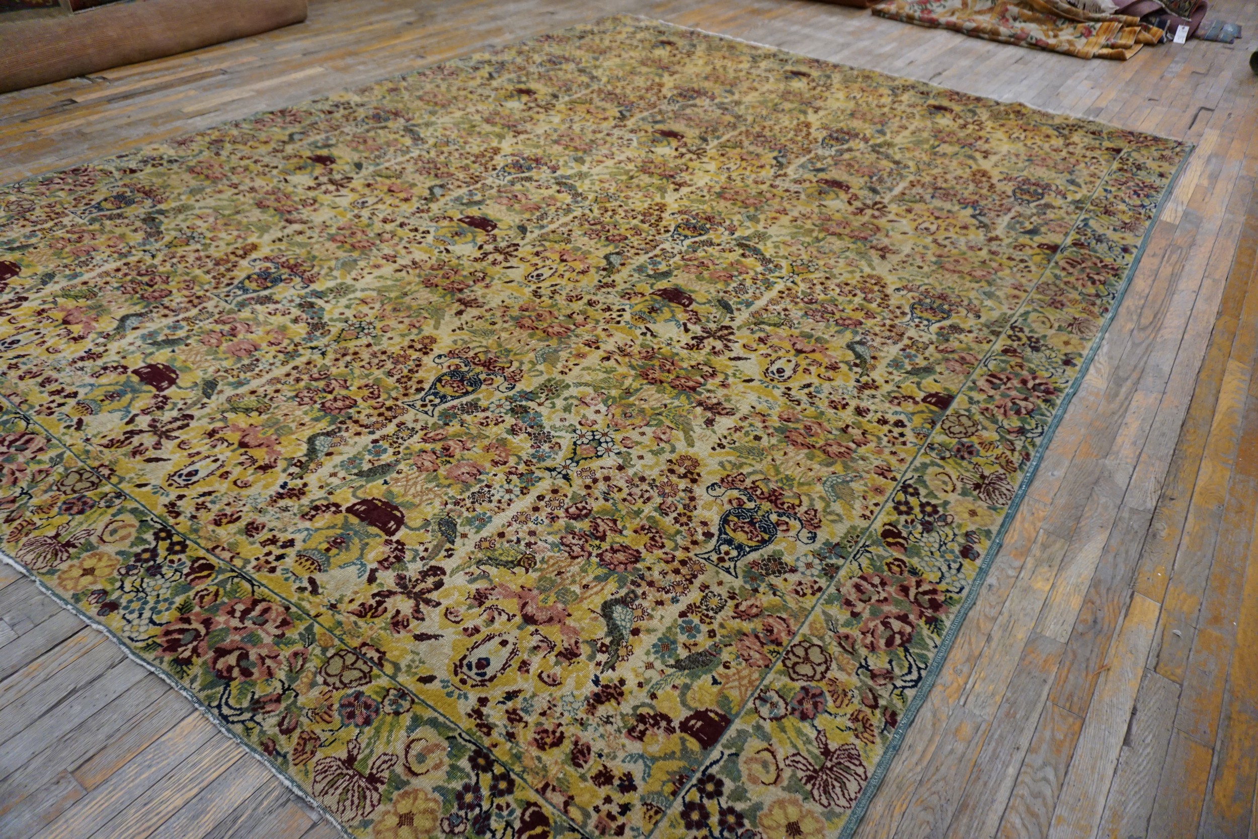 Antique Tahran Persian Allover Floral Knotted Rug, Circa Date: 1890s. This exceptional Persian weaving from the late Qajar period showcases the sophisticated taste prevalent in Tehran at the turn of the century. Its design departs from traditional medallion formats, favoring a continuous, European-influenced field that makes it a highly desirable example among antique rugs.