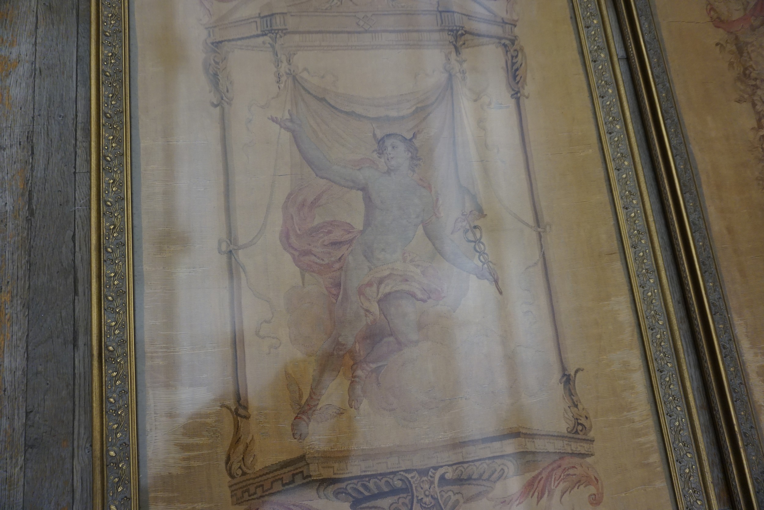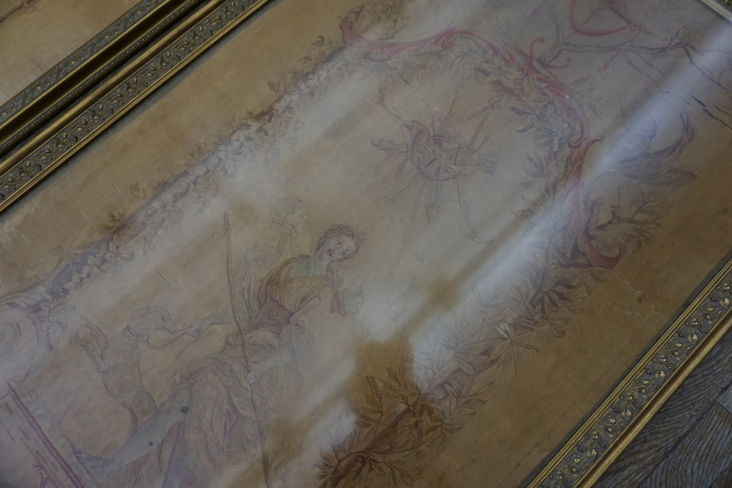 Pieces of this caliber were often commissioned for royal residences or aristocratic homes, reflecting the transition from heavy Baroque design to the lighter, more graceful aesthetics of Louis XV. While many tapestries were grand salon decorations, the dimensions of this particular textile suggest it may have been intended for a more intimate cabinet or private study, placing it in the category of a small scatter size textile, though its artistic merit is monumental.