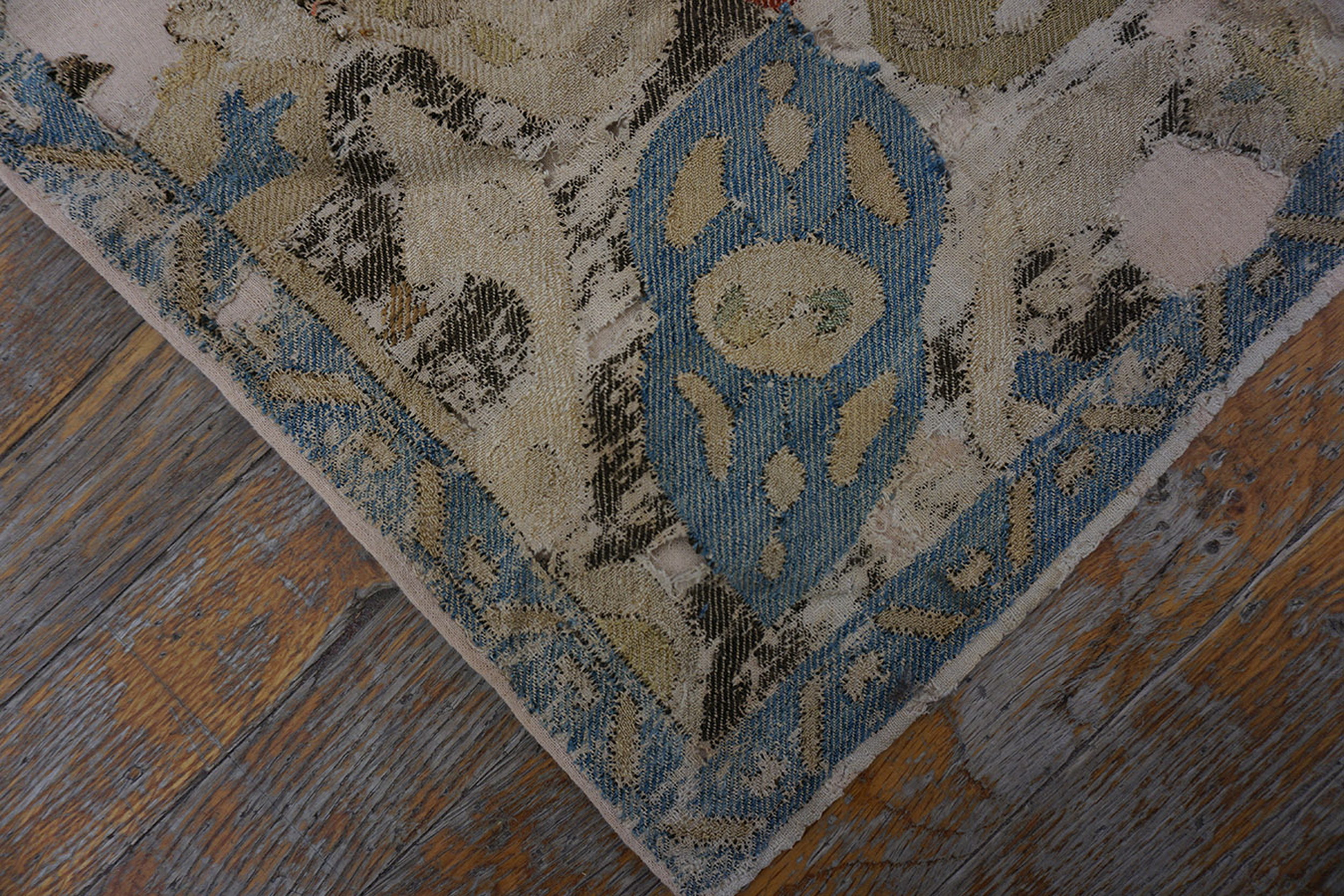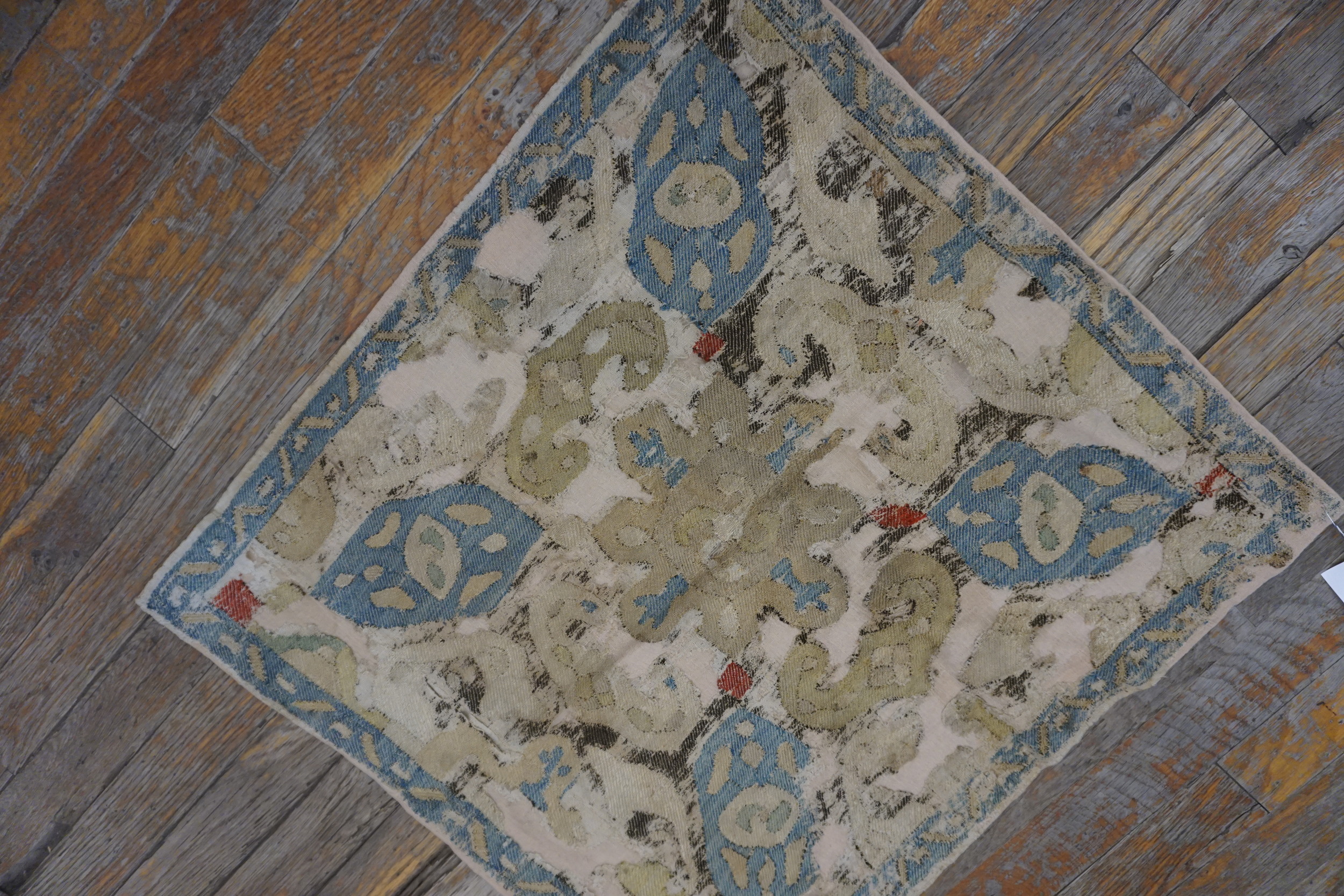 Due to its age and delicate construction, this piece exists today as a powerful fragment, perfect for display in a frame or shadow box. Its dimensions place it firmly within the category of small scatter size rugs, offering a concentrated dose of historical artistry and unparalleled provenance from the early 18th century.