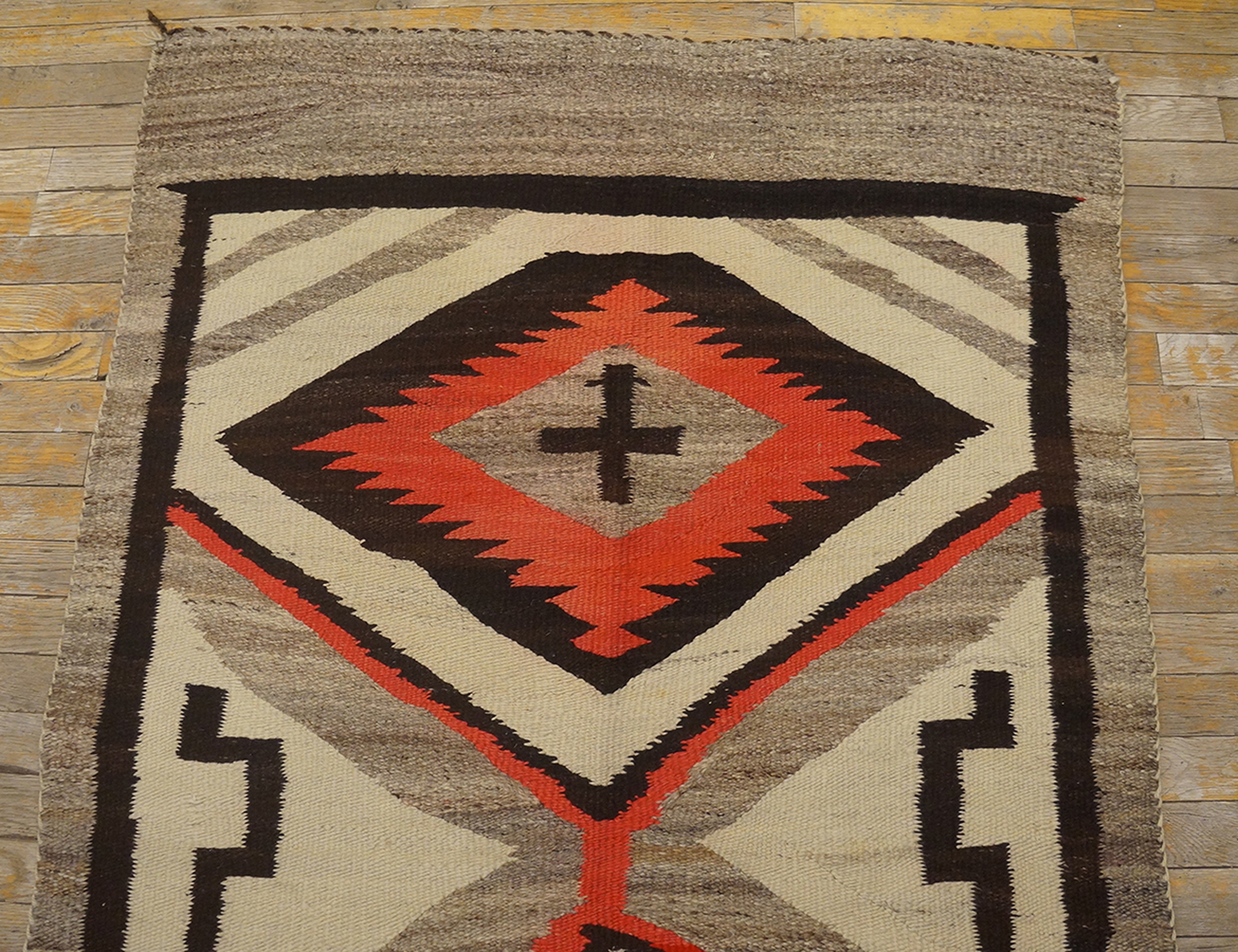 Antique American Navajo Gray 1925 Rug, Circa Date: 1925. This exceptional textile represents the peak of early 20th-century Diné weaving, showcasing the enduring strength and precision inherent in antique rugs from the American Southwest.