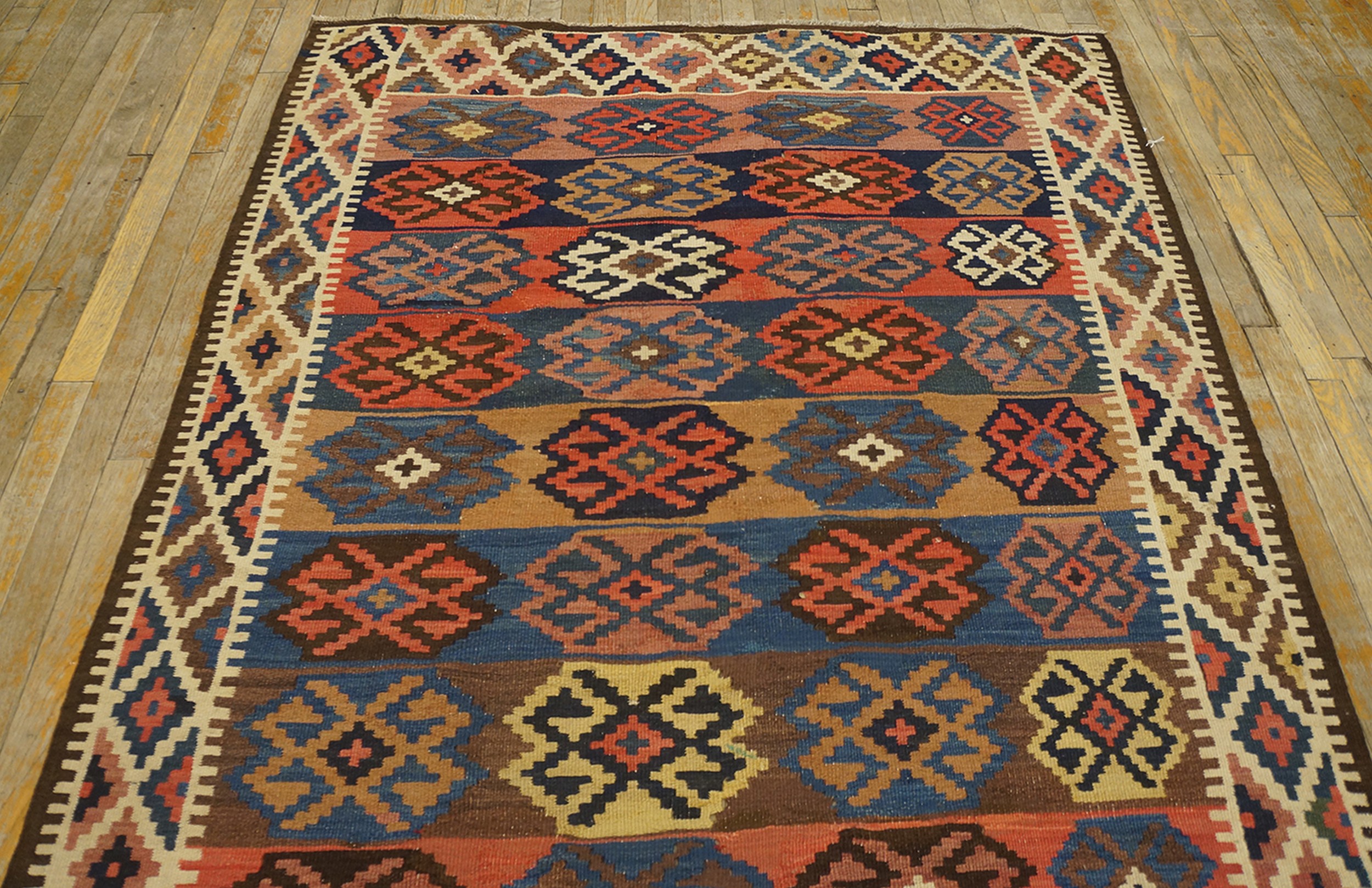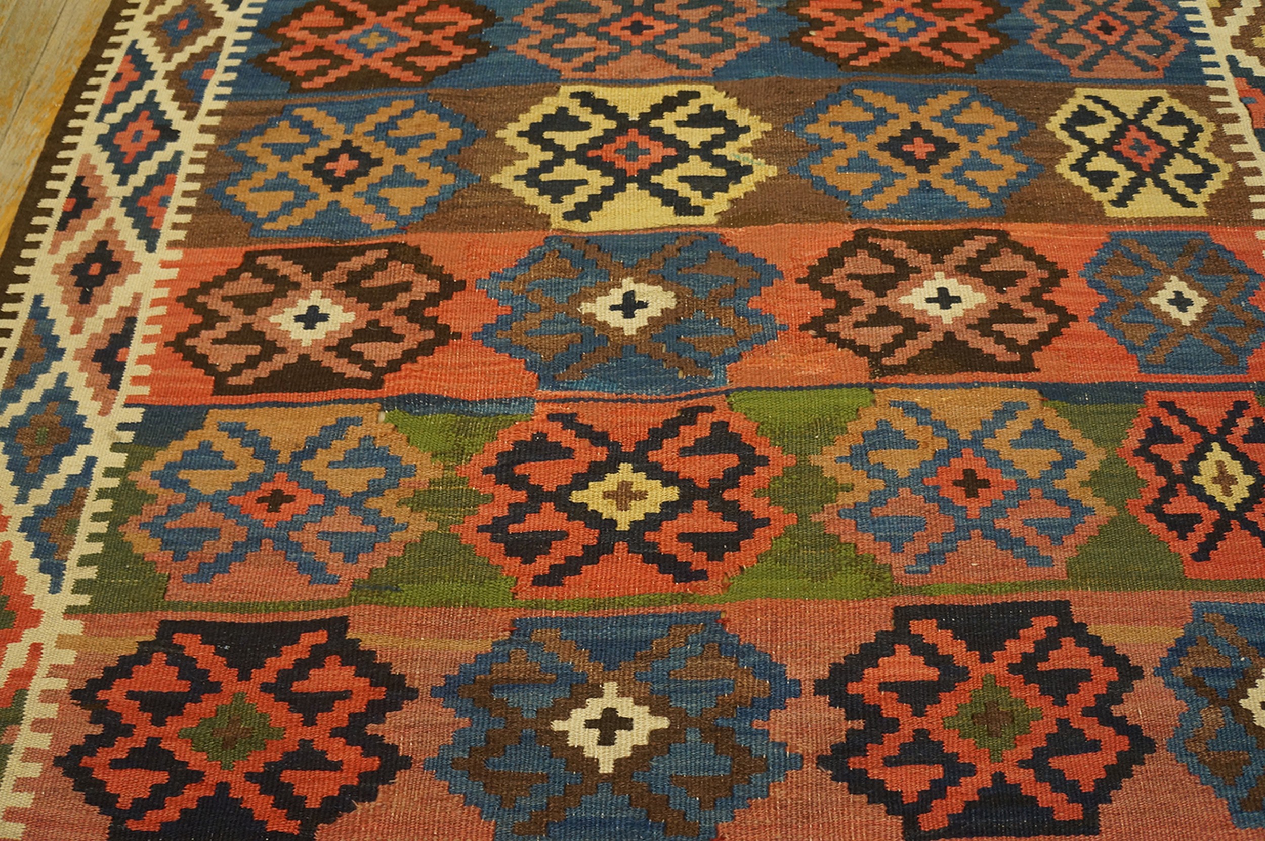 Hallway Runner Rugs (4.08ft x 15ft), Country of Origin: Iran / Persia, Circa Date: 1925. This exceptional flat-weave textile exemplifies the robust, tribal aesthetic characteristic of Iranian / Persian rugs from the early 20th century. Kilims, prized for their durability and striking graphic compositions, represent a distinct tradition separate from pile weaving.