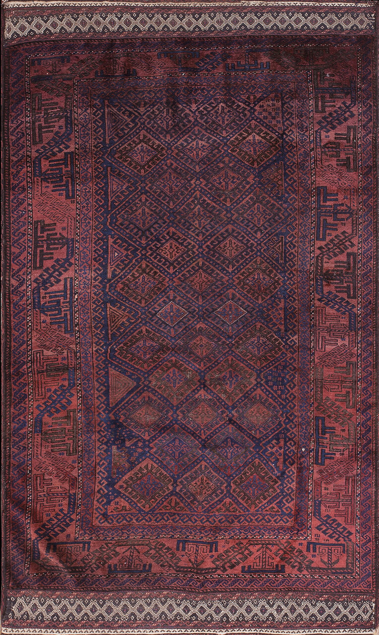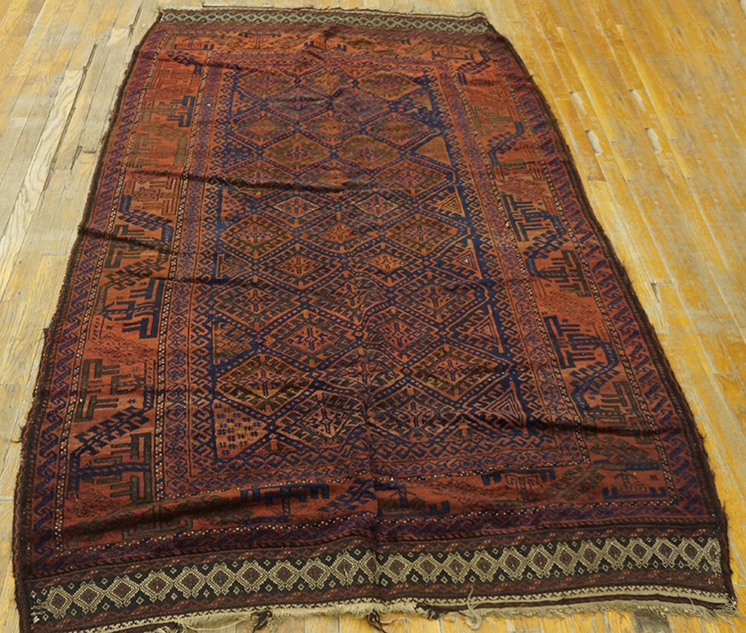 Antique Tribal Geometric Pattern Persian Baluch Small Area Rug