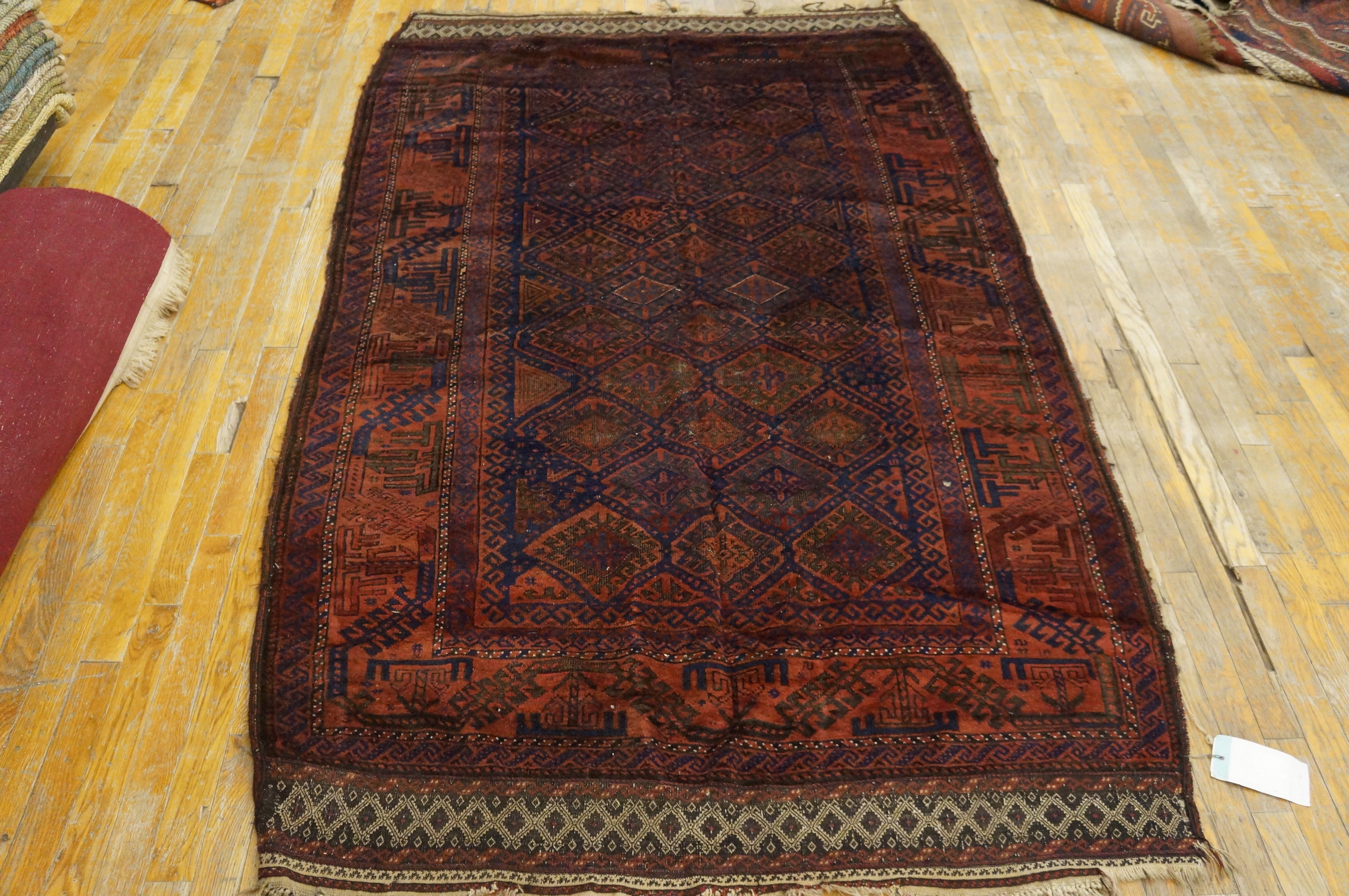 Given its dimensions, this Baluch functions perfectly as a small scatter size rug, ideal for layering or highlighting a specific area such as an entryway or bedside. Its historical depth and powerful coloration ensure that it remains a sophisticated focal point, bridging traditional tribal aesthetics with contemporary design sensibilities.