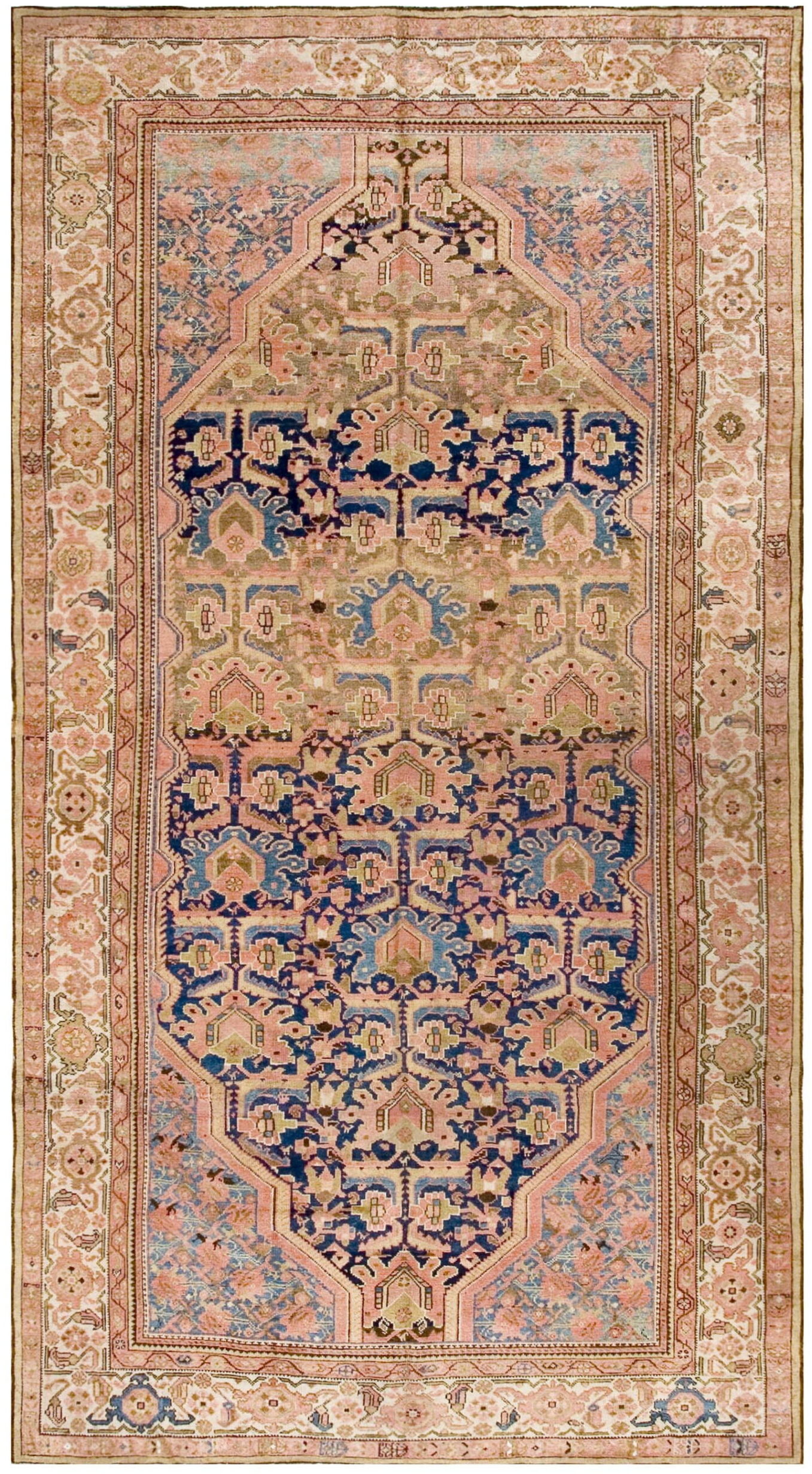 A highly stylized central medallion anchors the composition, featuring intricate geometric and stylized botanical elements characteristic of the Malayer region’s interpretation of classic Persian motifs. The surrounding field is densely populated with repeating palmettes and delicate vines, placing this piece firmly in the category of exceptional floral rugs.