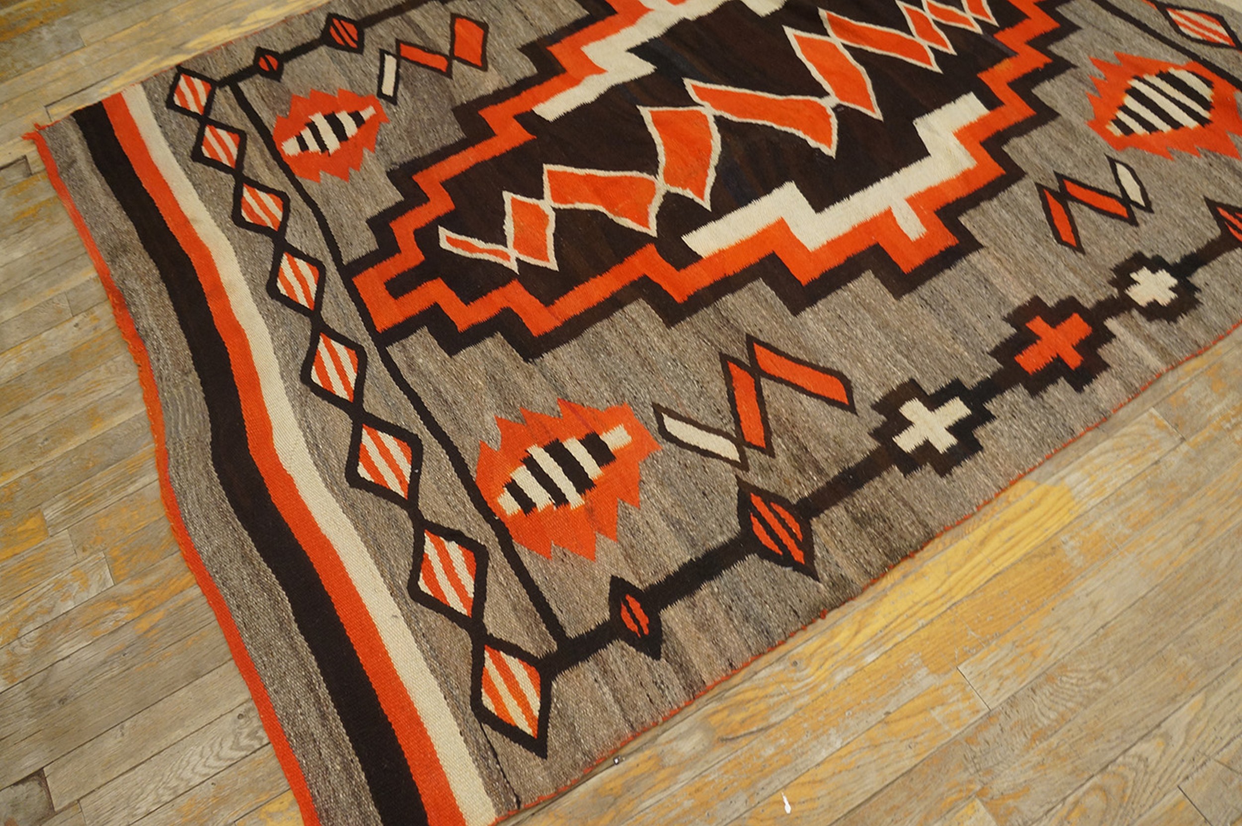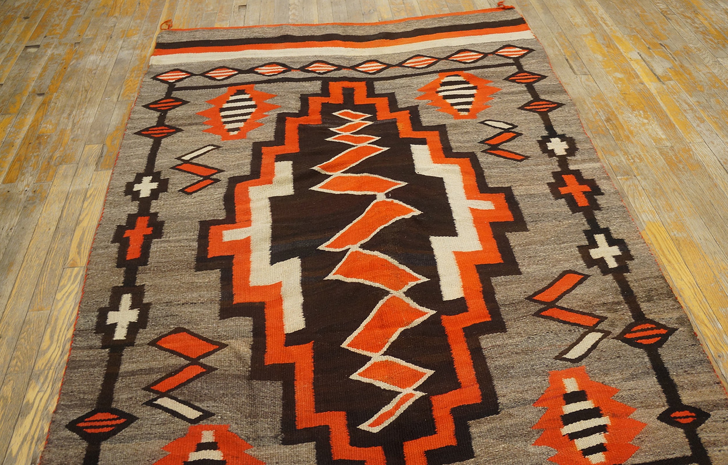 Antique Navajo American Geometric Grey 1920s Rug, Circa Date: 1920s. This exceptional weaving represents the bold, transitional aesthetic of early 20th-century Navajo textiles. Its powerful storm pattern composition utilizes classic stepped and serrated forms, characteristic of the period when weavers moved toward more defined, central medallion formats.