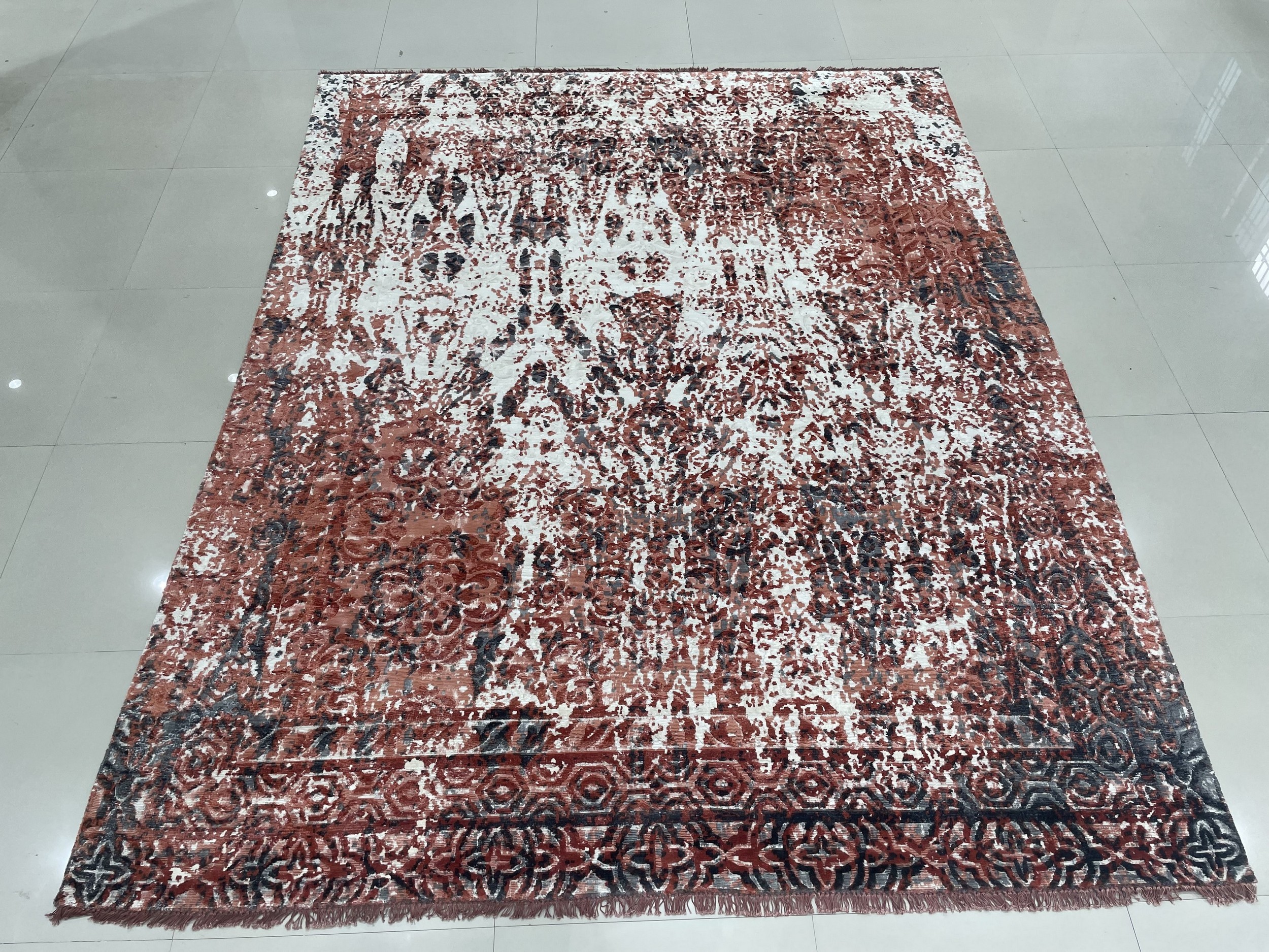 Designed to function as a powerful centerpiece, this rug transcends simple categorization, bridging the gap between abstract expressionism and classic textile artistry. Whether anchoring a spacious living room or defining a formal dining area, its substantial dimensions are perfect for those seeking room size rugs that make a definitive statement. The intentional blurring of the design creates a dynamic, painterly effect that evolves with the light.
