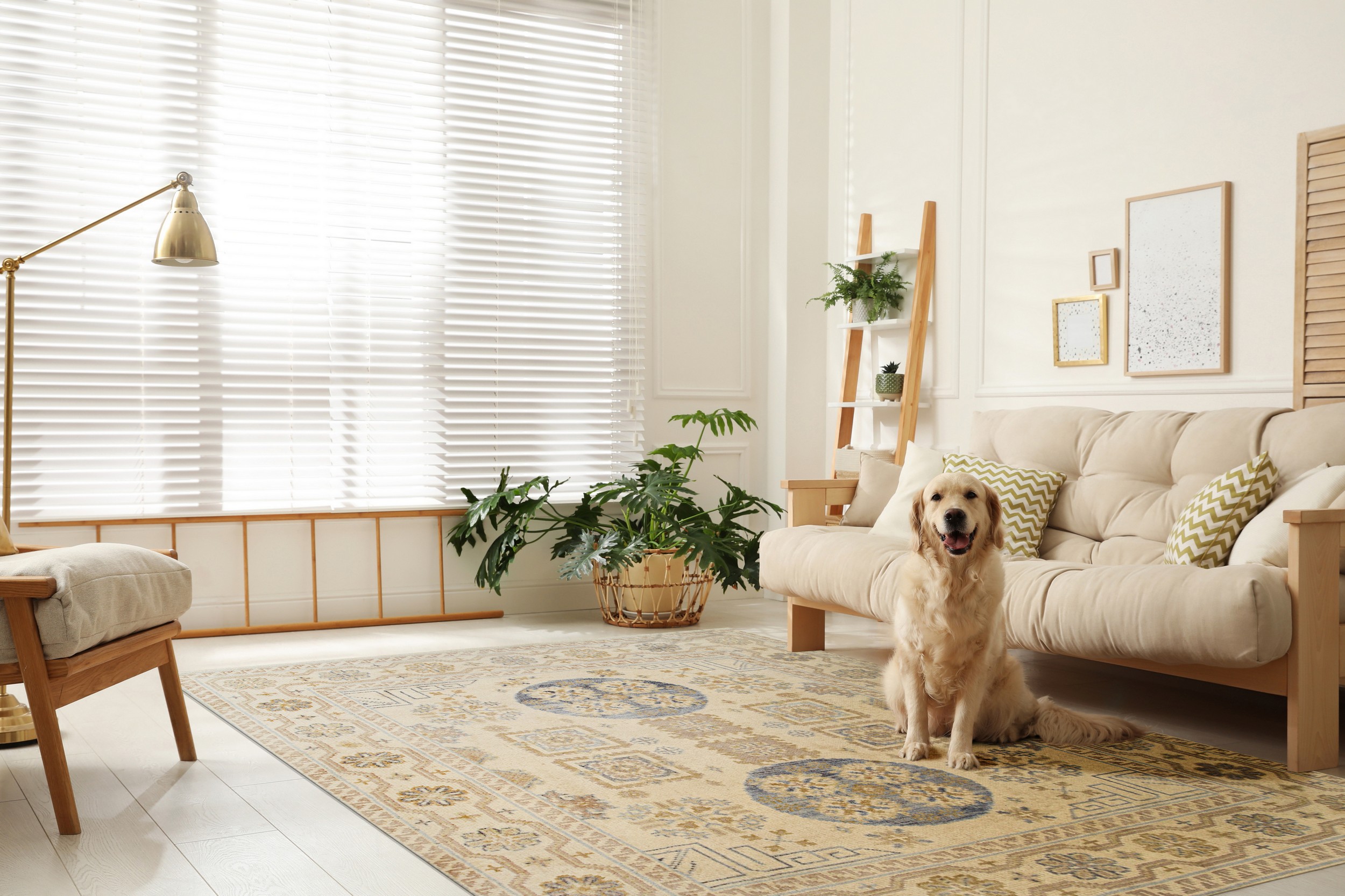 The palette is defined by a serene, creamy beige field, offering a versatile foundation for diverse interior designs. Subtle accents of soft slate blue and warm taupe are carefully introduced through the medallion and border elements, elevating the sophistication inherent in this ivory and beige color rug.