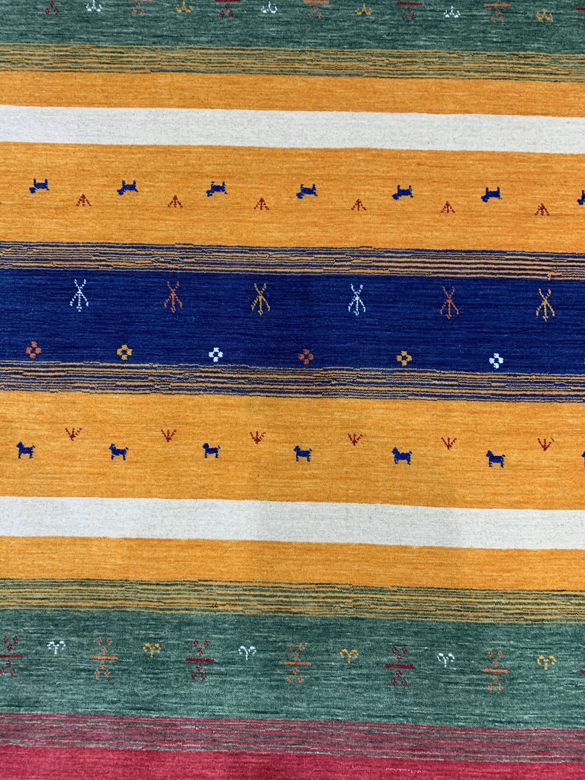 Hand-knotted from premium wool, the rug exhibits a plush, resilient pile that speaks to its superior construction and longevity. The subtle variations in color within the stripes attest to the artisan's use of natural dyes and traditional weaving processes. Whether seeking a centerpiece for a living room or an accent for a study, this piece exemplifies the finest craftsmanship available among new area rugs.
