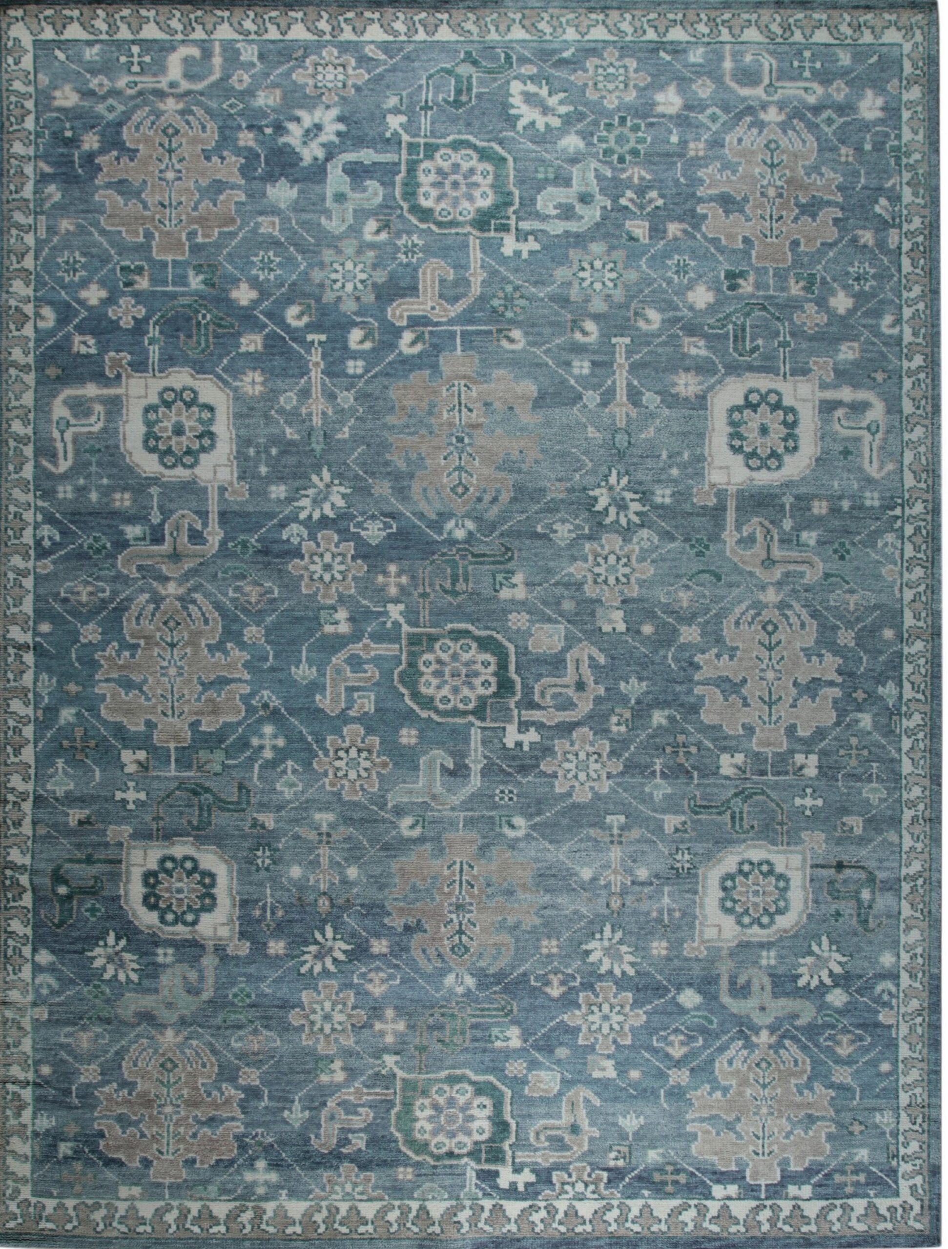 Beautiful Oushak Blue Hand Knotted Wool Rug, Country of Origin: India. This exquisite piece captures the grand scale and stylized motifs characteristic of classic Oushak designs, reinterpreted through the skilled weaving traditions of Indian rugs. Hand-knotted from premium wool, it offers a soft, durable foundation built to last for generations.