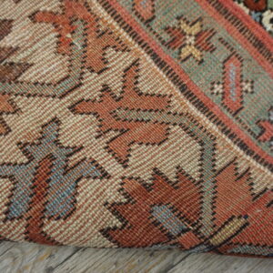 Designed specifically for transitional spaces, this piece functions perfectly as a hallway runner rug. Its elongated format showcases a sequential arrangement of stepped medallions and cruciform elements, framed by a broad, ivory-ground main border featuring repeating stylized palmettes and geometric forms.