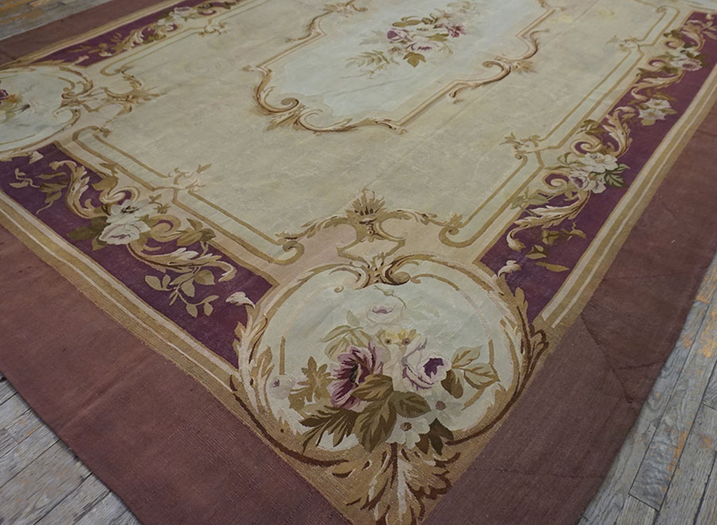 Beige Field Antique Late 19th Century French Flatweave Aubusson Room Size Rug