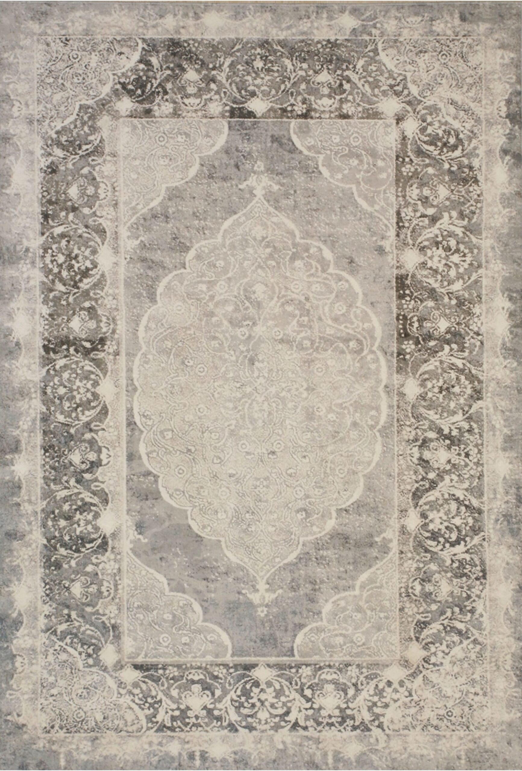 Bianca Warm Gray Machine Made Rug, Country of Origin: Turkey. This elegant piece draws inspiration from classic Oriental design, featuring a central medallion and ornate spandrels. The craftsmanship reflects the enduring legacy of Turkish rugs, offering a sophisticated interpretation of traditional patterns suitable for the modern home.