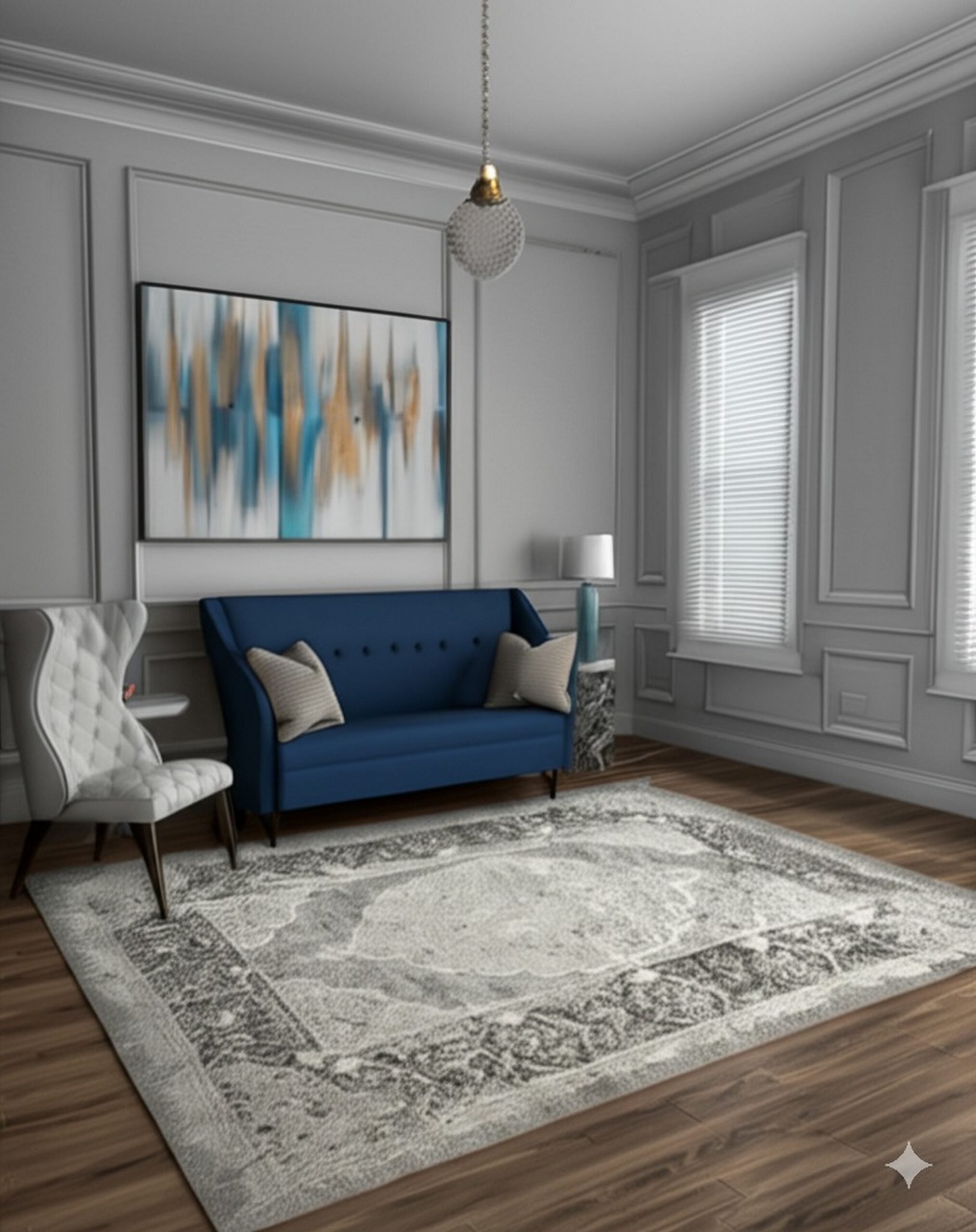 The Bianca rug utilizes a deliberately faded aesthetic, where charcoal and soft cream tones blend seamlessly into a warm, inviting field. This intentional distressing provides the patina of age without the wear, making it an excellent choice for those seeking gray color rugs that anchor a room with understated elegance.