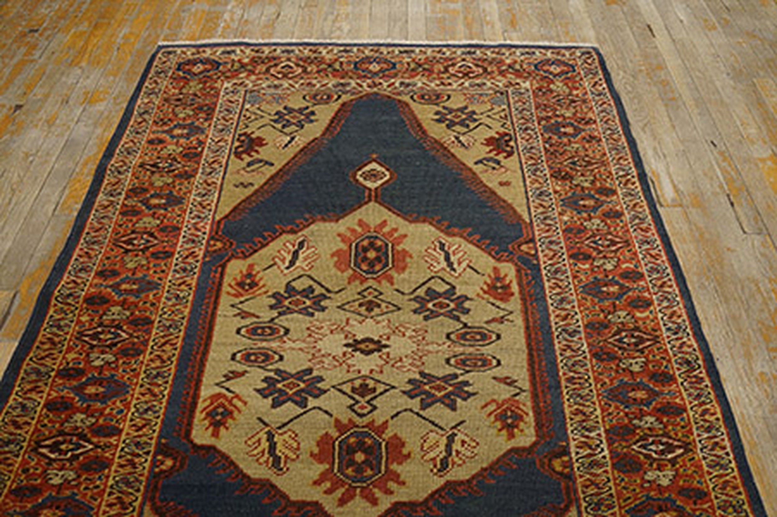 This late nineteenth-century Persian Sultanabad rug is a rare “jewel-box” specimen from one of the most prestigious weaving centers of the Arak district. While large-scale Sultanabad Persian rugs (and their Ziegler counterparts) are world-renowned for anchoring grand estates, this small scatter-size rug is a significant rarity, distilling the monumental “High-Style” aesthetic of the region into an intimate, scholarly format.