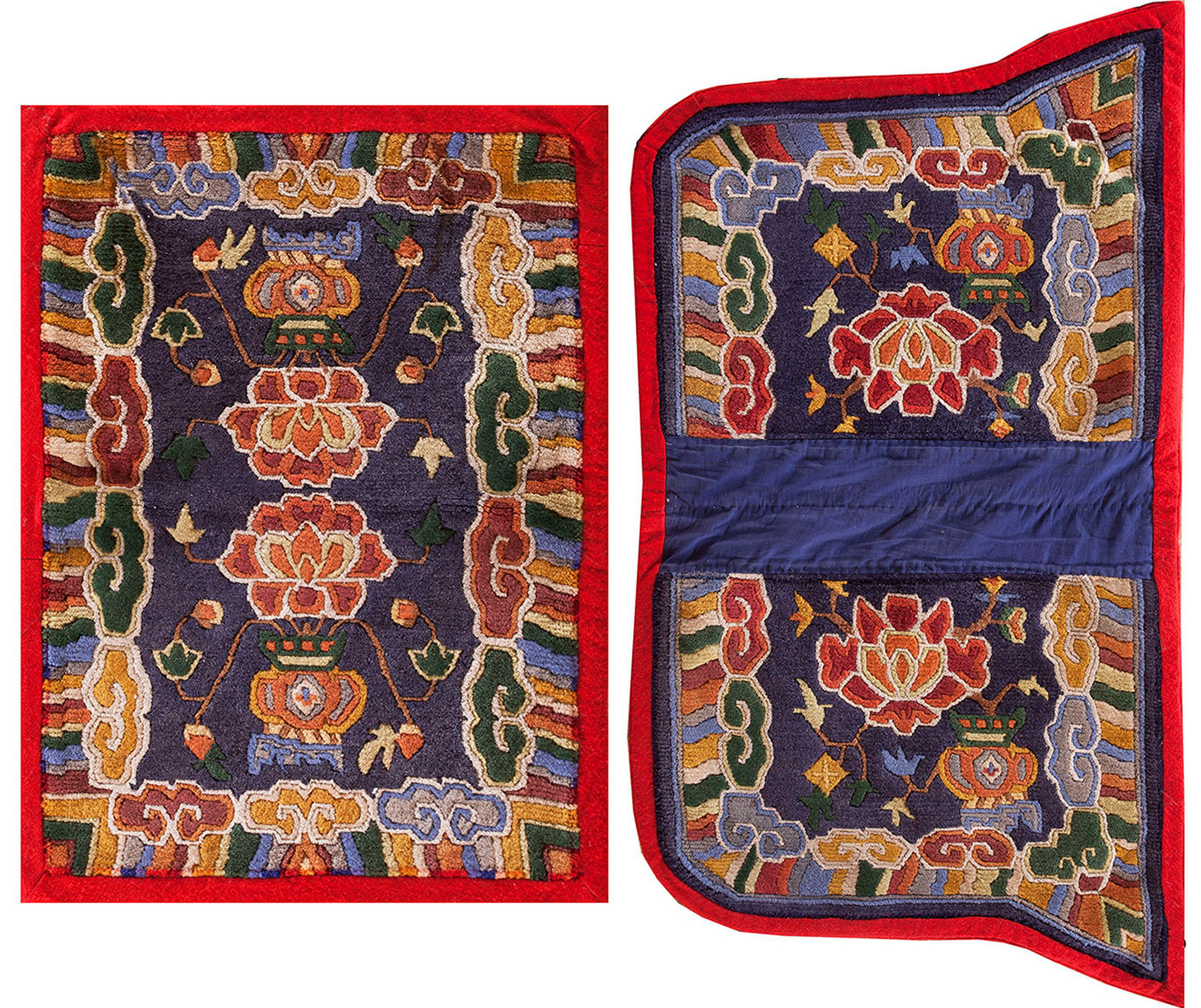 This rare and early 20th-century Antique Chinese Saddle Horse Cover Rug Set is an extraordinary example of utilitarian textile art, designed for the nomadic and equestrian traditions of the East. While single saddle rugs are occasionally found, possessing a matched set—traditionally comprising the upper saddle rug and the lower shaped horse cover—is a significant find for collectors of tribal and ethnographic textiles.