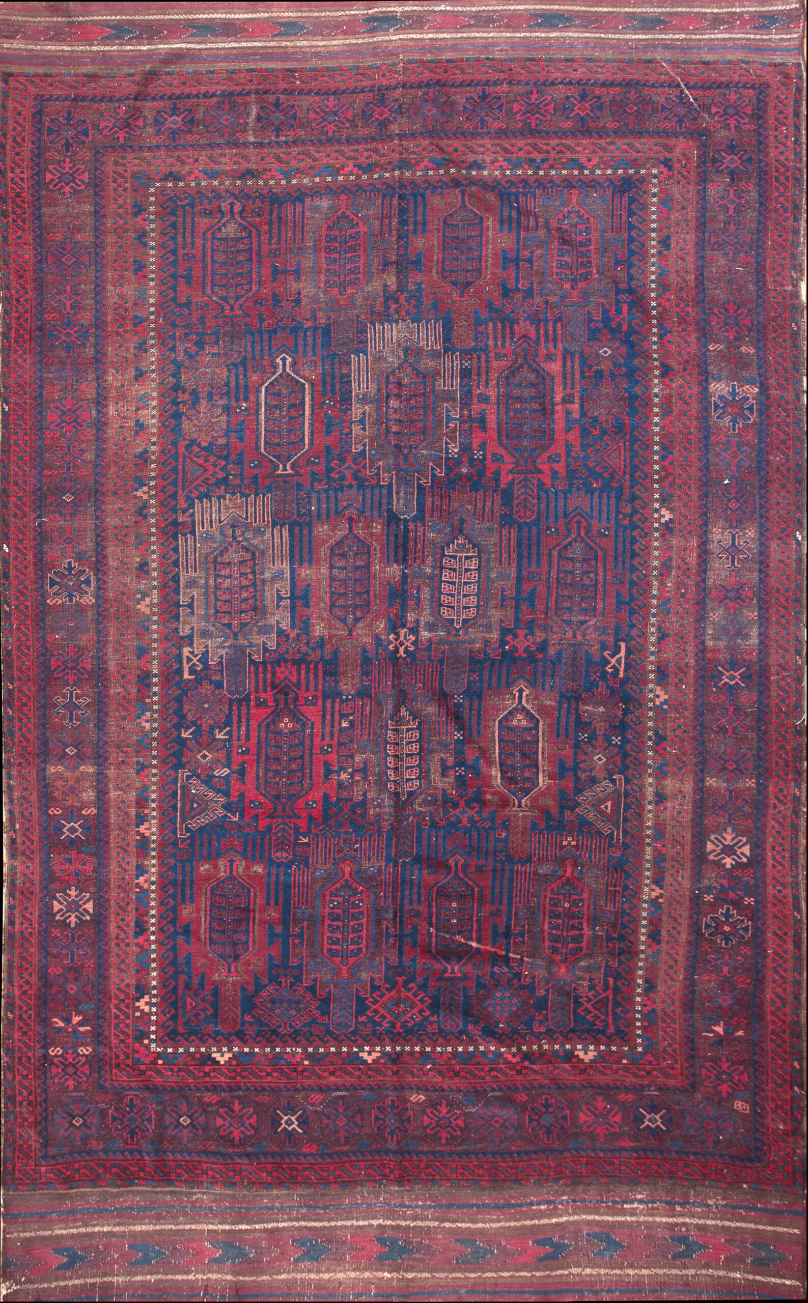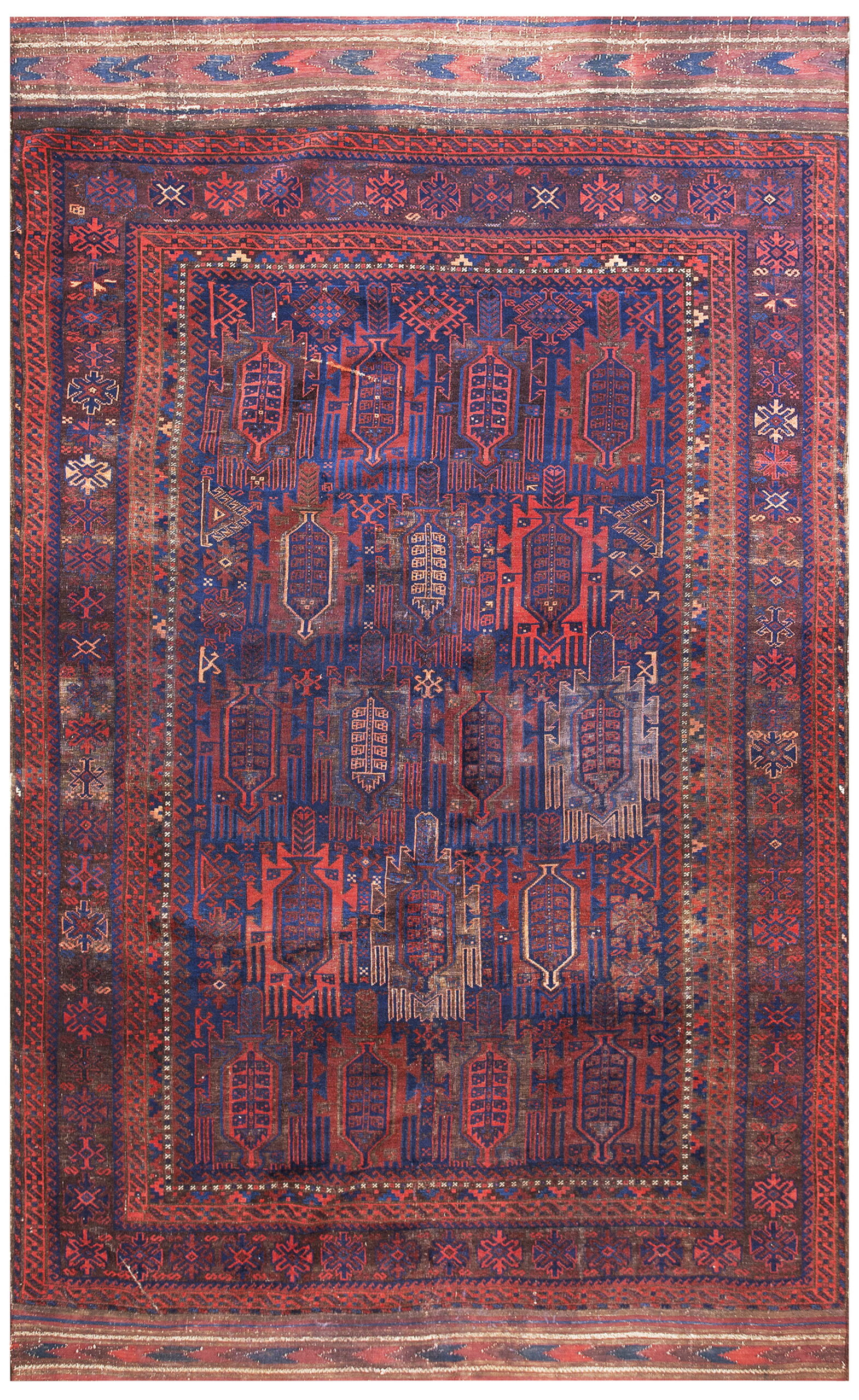 Woven by semi-nomadic peoples residing near the borders of Persia and Afghanistan, this piece exemplifies the distinct aesthetic of the region. The structure is tight and resilient, typical of weavings intended for daily use within a tribal context, showcasing highly geometric and often abstract designs.