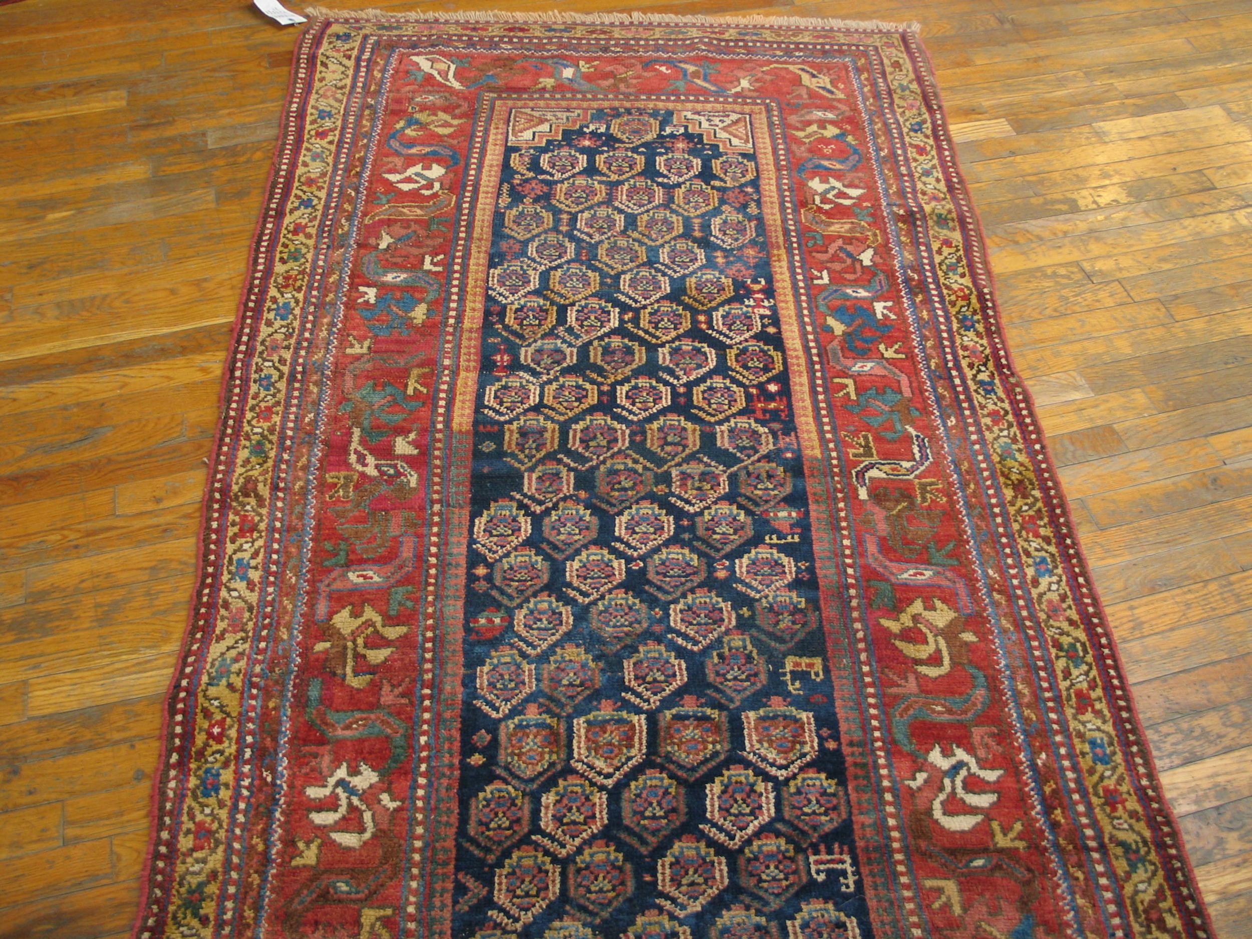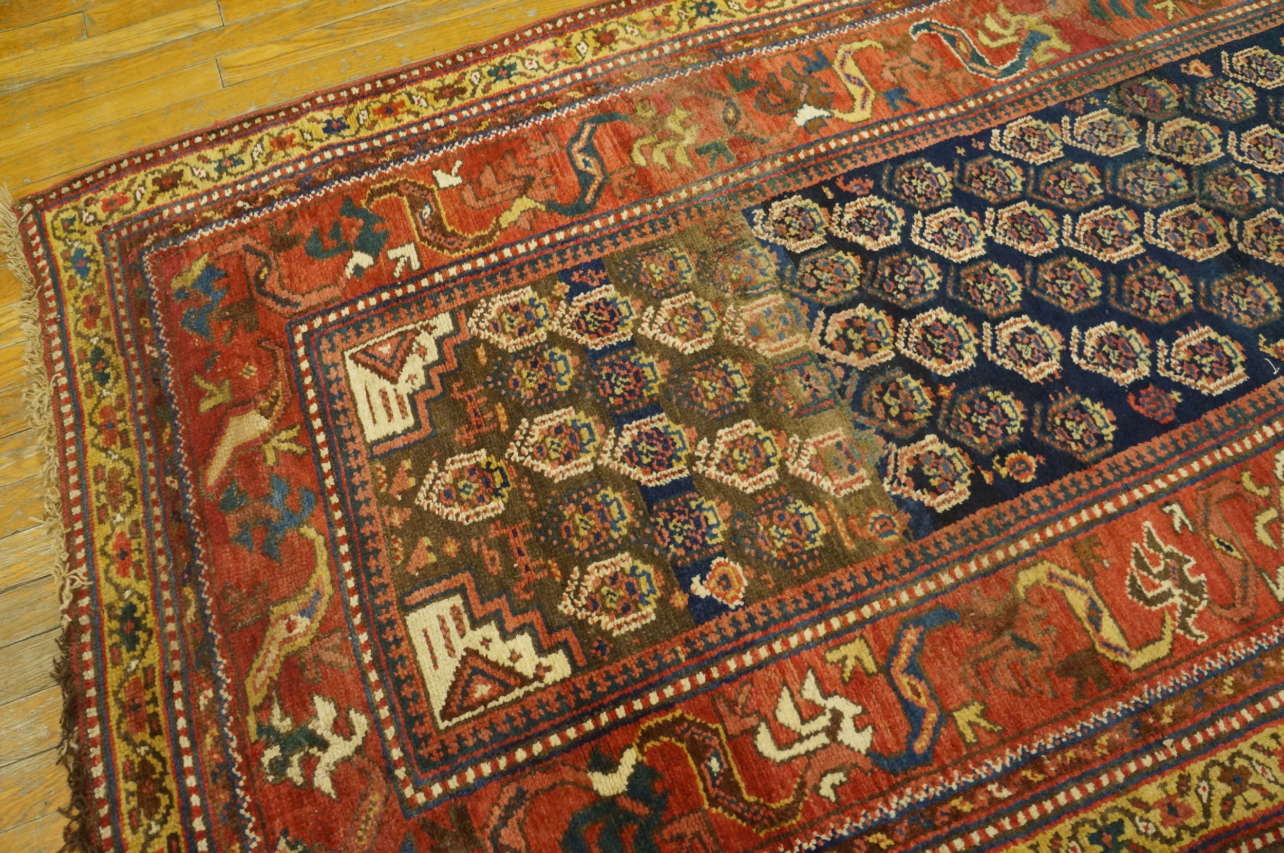 Antique Kurdish Persian Blue 1930s Rug, Circa Date: 1930s. This exceptional piece represents the robust weaving tradition of the Kurdish regions of Persia, characterized by its deep saturation and enduring tribal motifs. It is a superb example of antique rugs that retain their original integrity and powerful aesthetic.