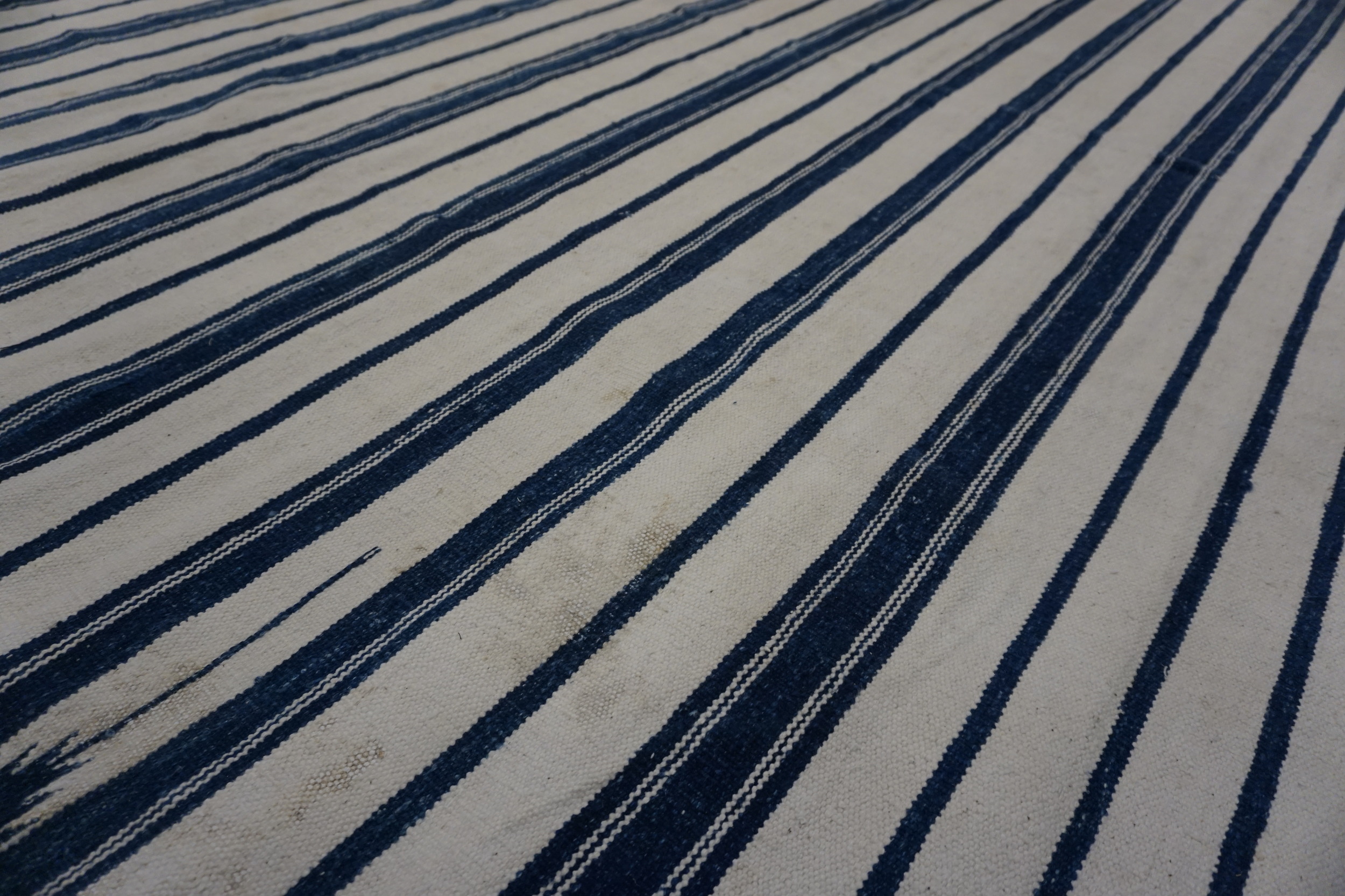 Measuring generously, this textile is perfectly scaled for use as a primary floor covering. Its graphic simplicity and expansive dimensions make it highly adaptable for modern interiors seeking the patina of age combined with clean lines, positioning it favorably among desirable room size rugs.
