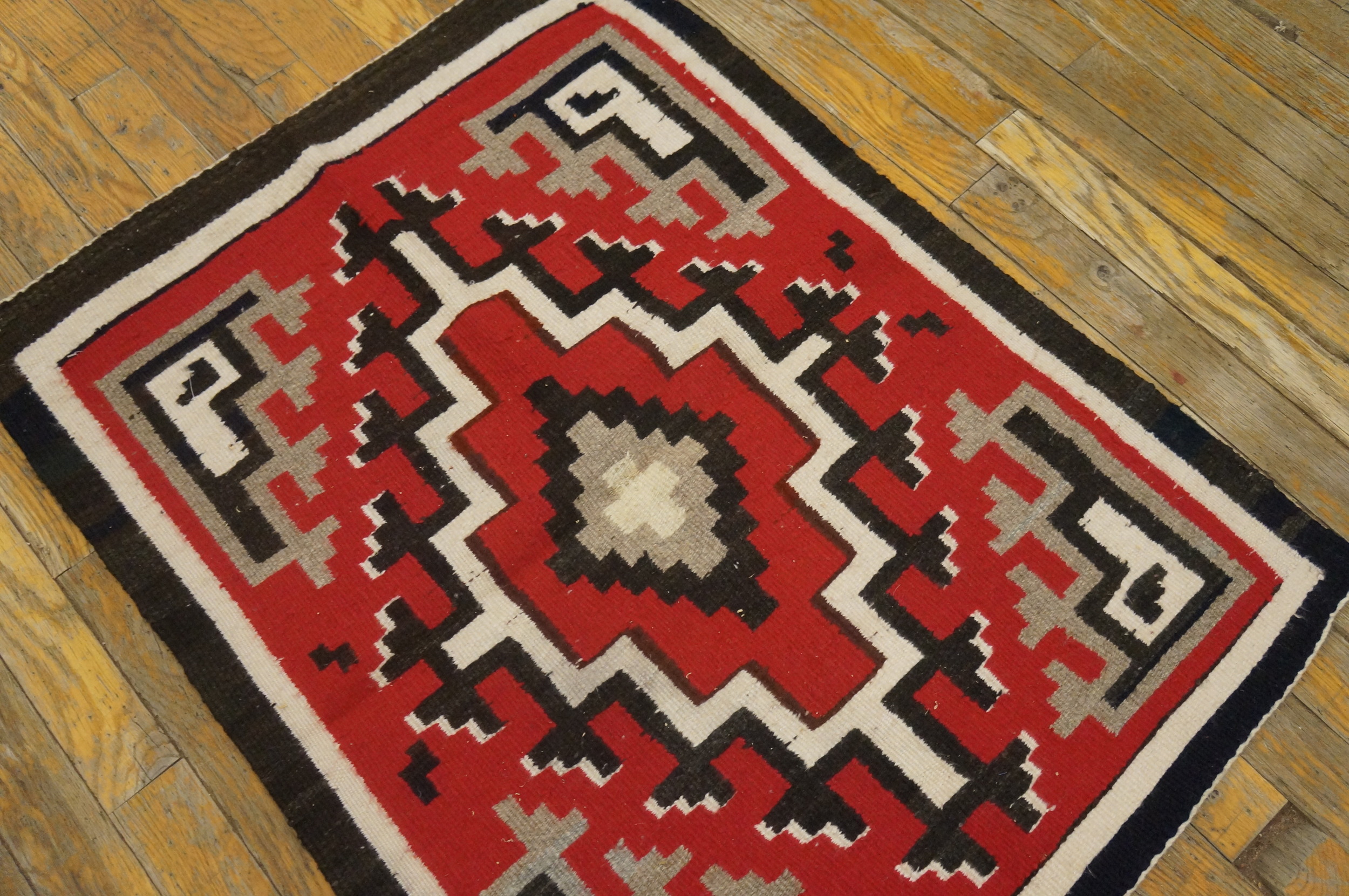 Antique Navajo American Coral 1940s Rug, Circa Date: 1940s. This exceptional piece of American textile history represents the enduring artistry of the Navajo weavers. Dating from the 1940s, it showcases the bold, graphic style that defines high-quality antique rugs from the Southwest.
