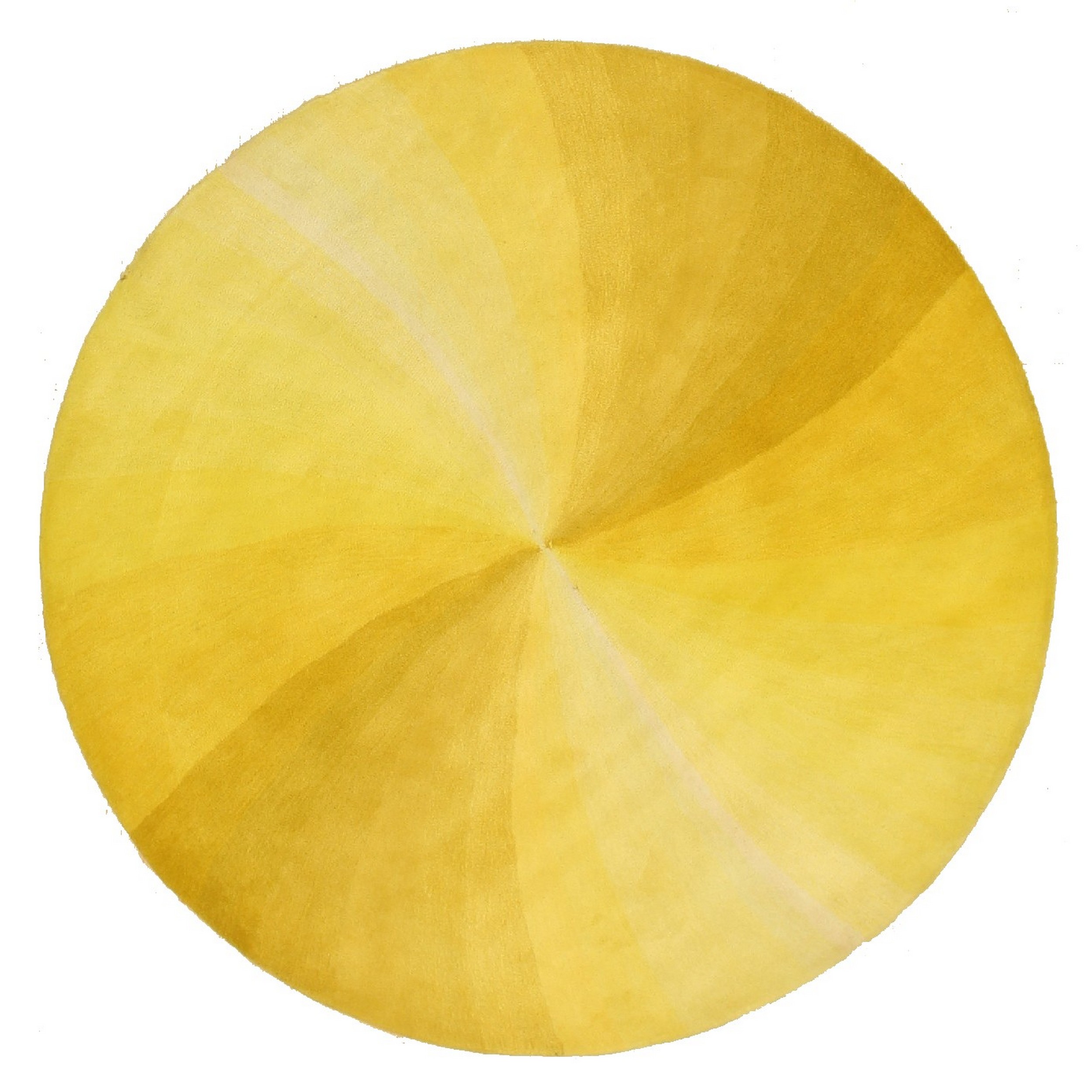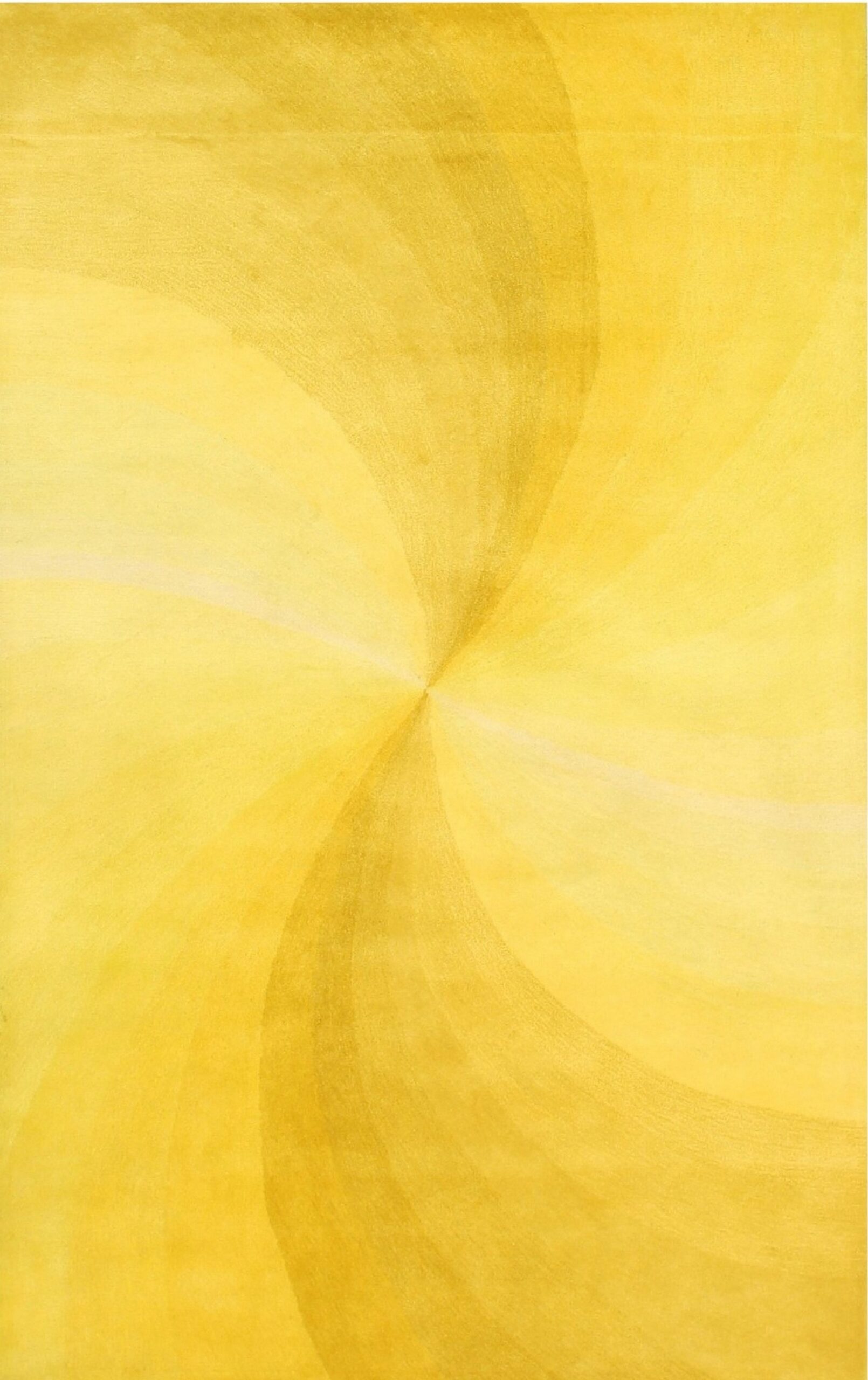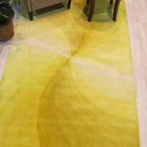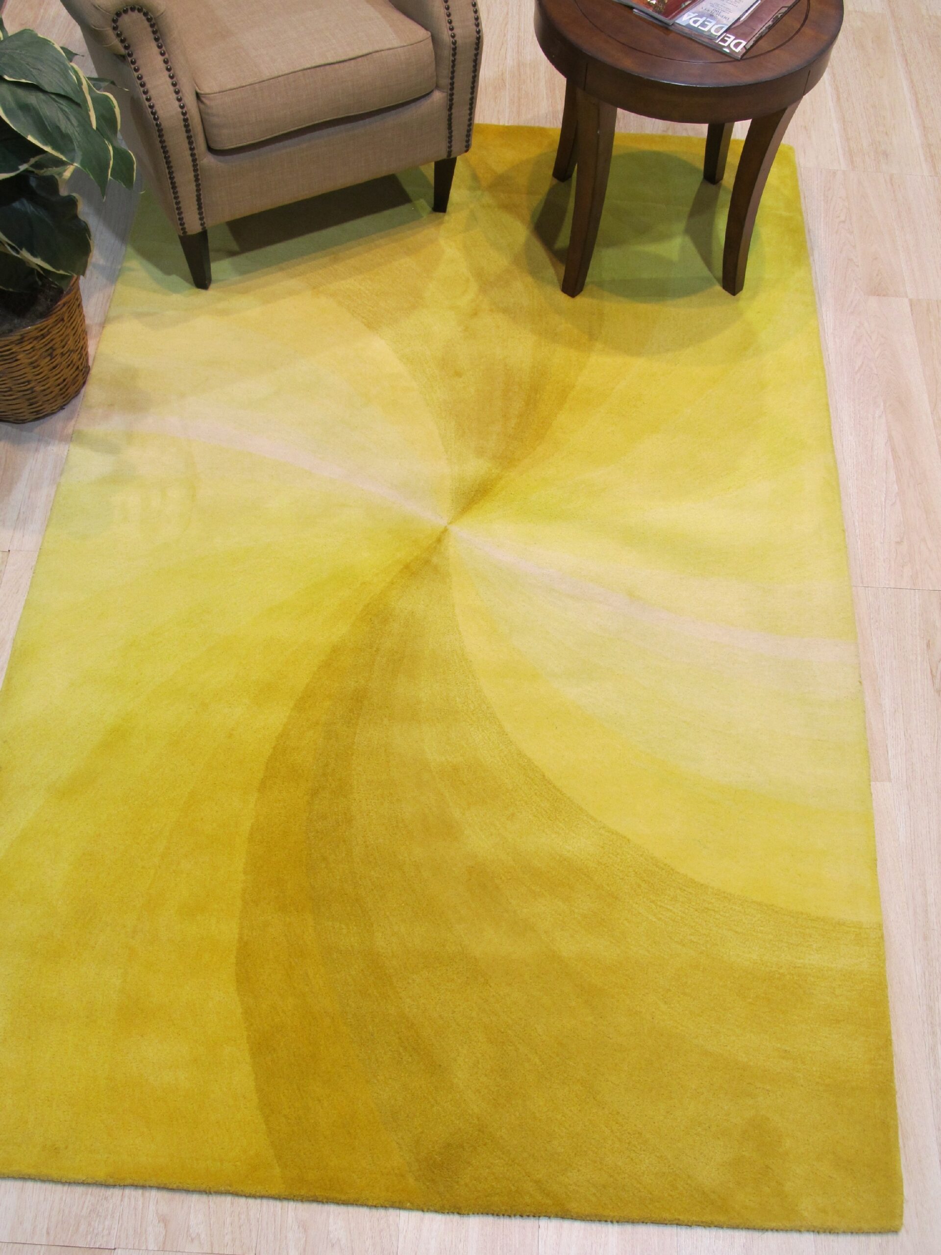 Brenda Chic Yellow Hand Tufted Wool Rug, Country of Origin: India. This striking piece exemplifies modern textile art, moving beyond traditional motifs to embrace pure color and kinetic form. Sourced from the esteemed workshops producing Indian Rugs, this piece represents a high standard of contemporary textile craftsmanship.