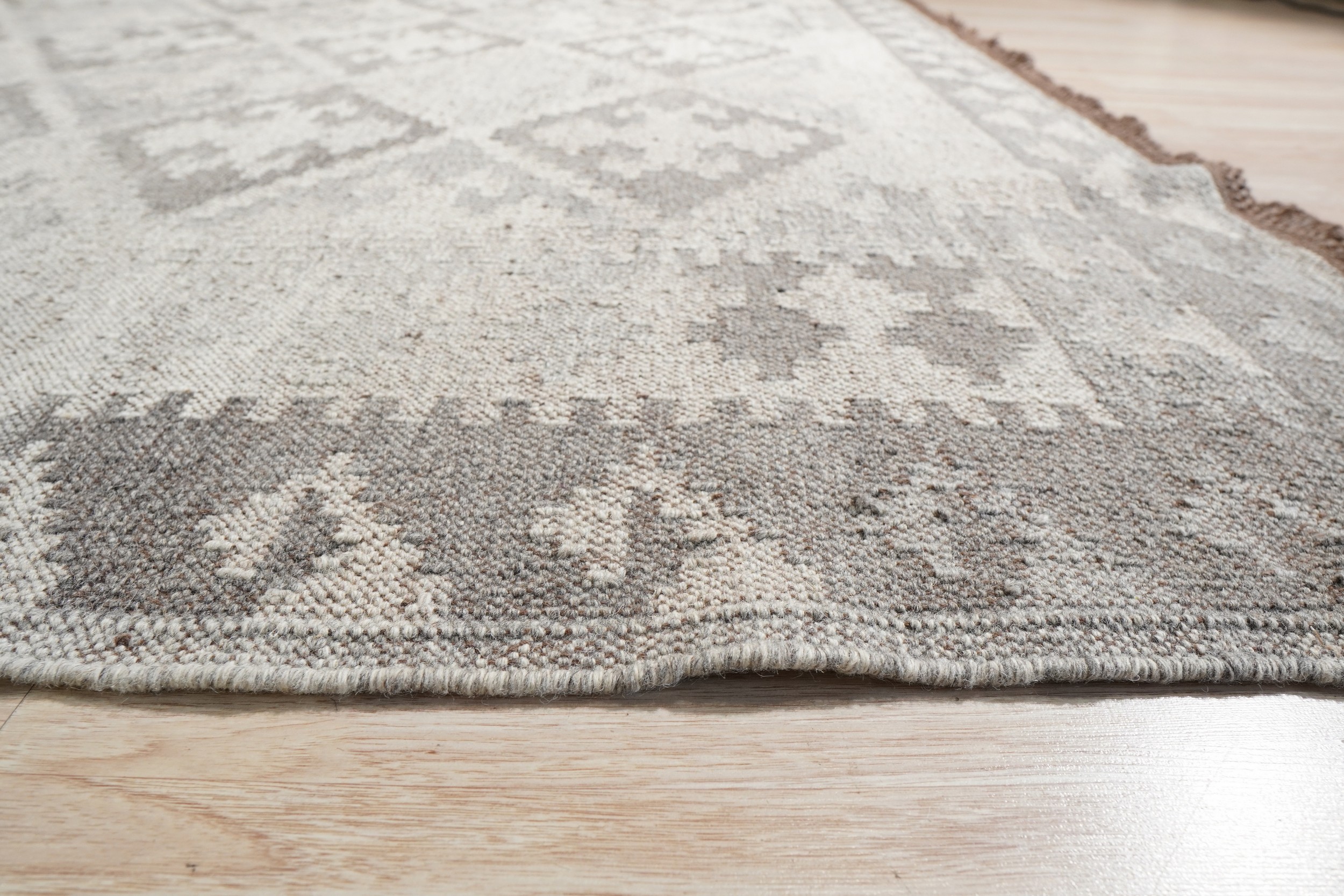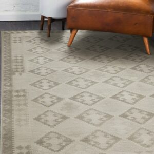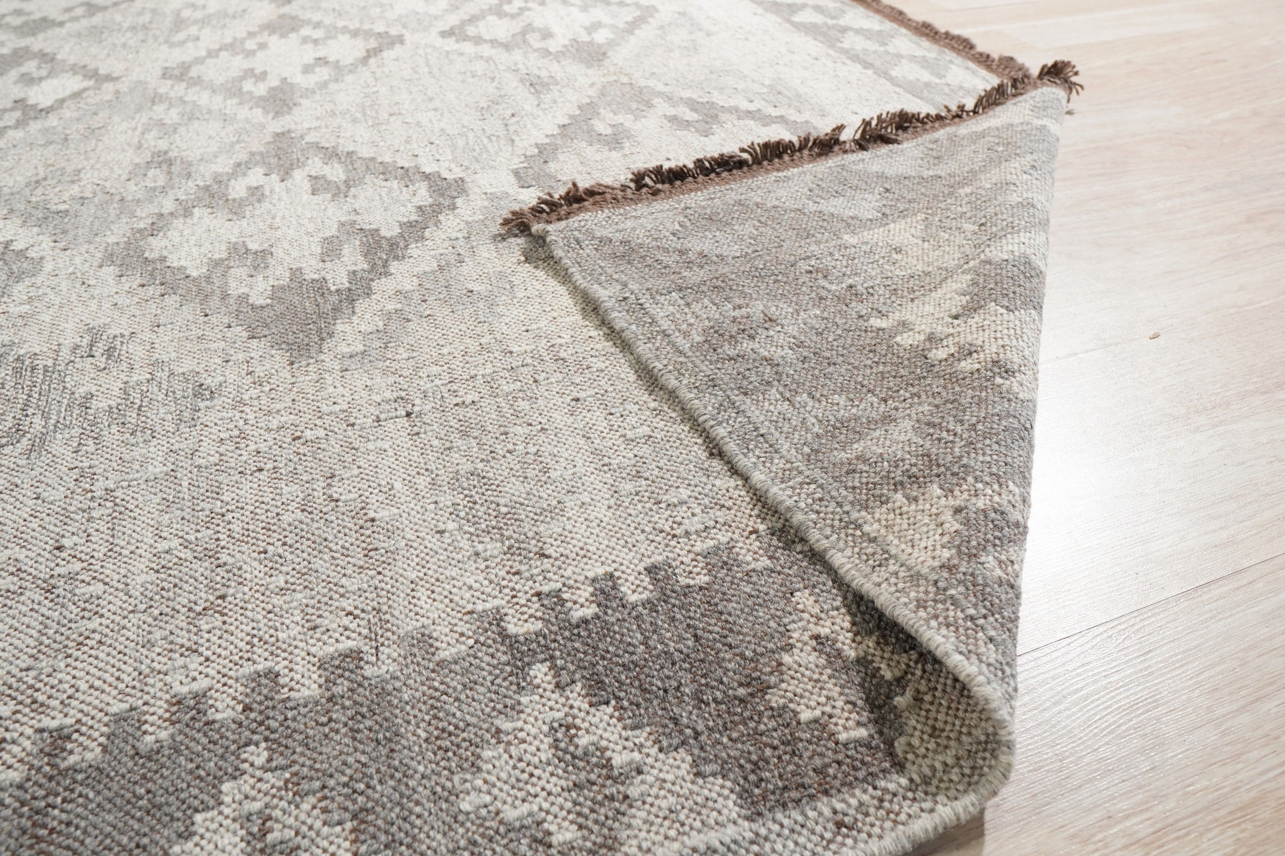 Brenda Para Gray Flatweave Wool Rug, Country of Origin: India. This exceptional piece showcases the mastery of contemporary flatweave construction, reflecting the evolving artistry found among Indian rugs. The kilim technique provides a low-profile, durable texture, making it a versatile foundation for any modern interior.