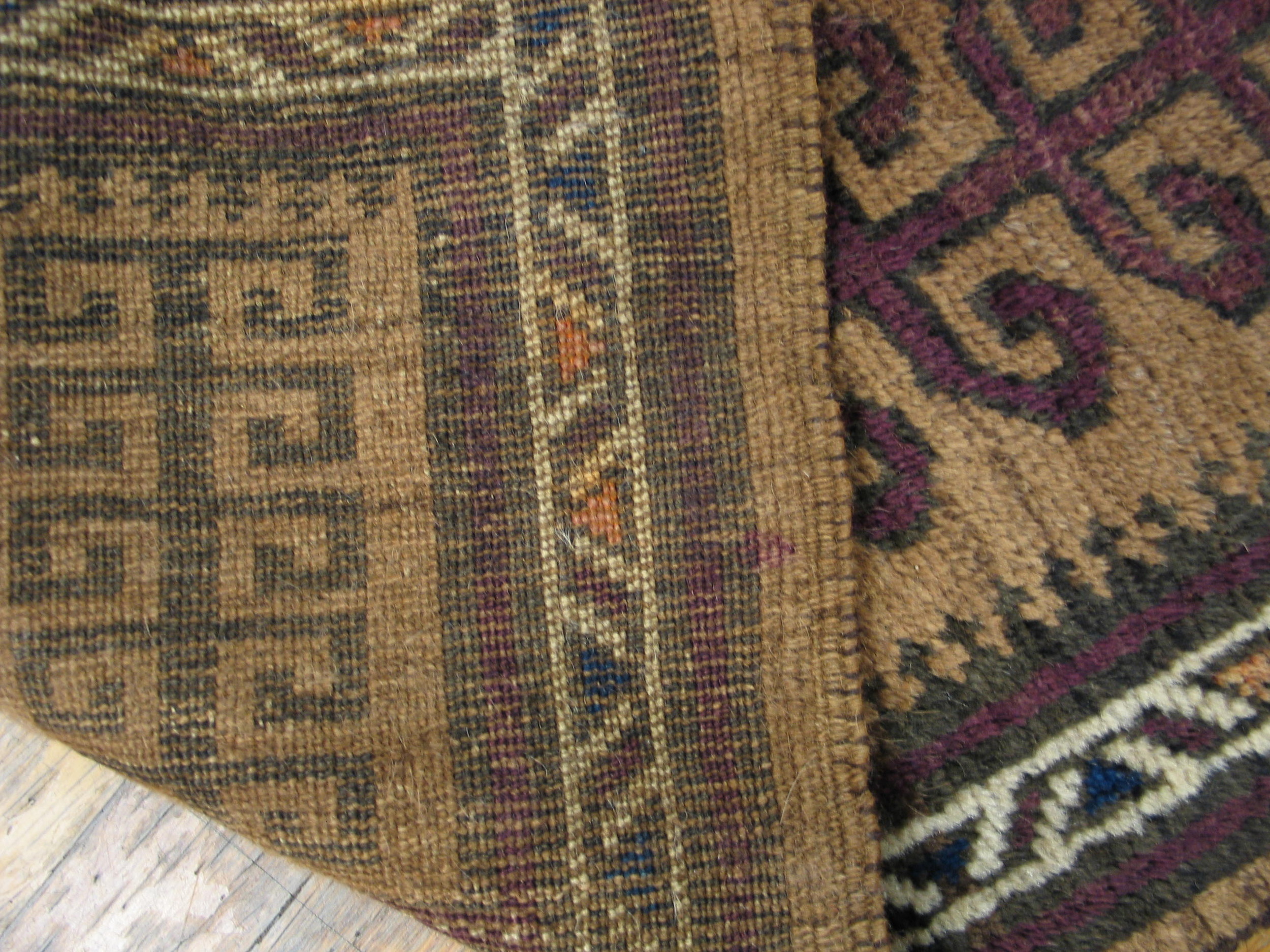 Antique Baluch Afghanistan Brown 1890s Rug, Circa Date: 1890s. This classic example of a baluch rug was skillfully hand-woven in the region of Afghanistan during the late 19th century. The piece is characterized by its tightly knotted structure and its inherently earthy, warm palette derived from natural dyes.