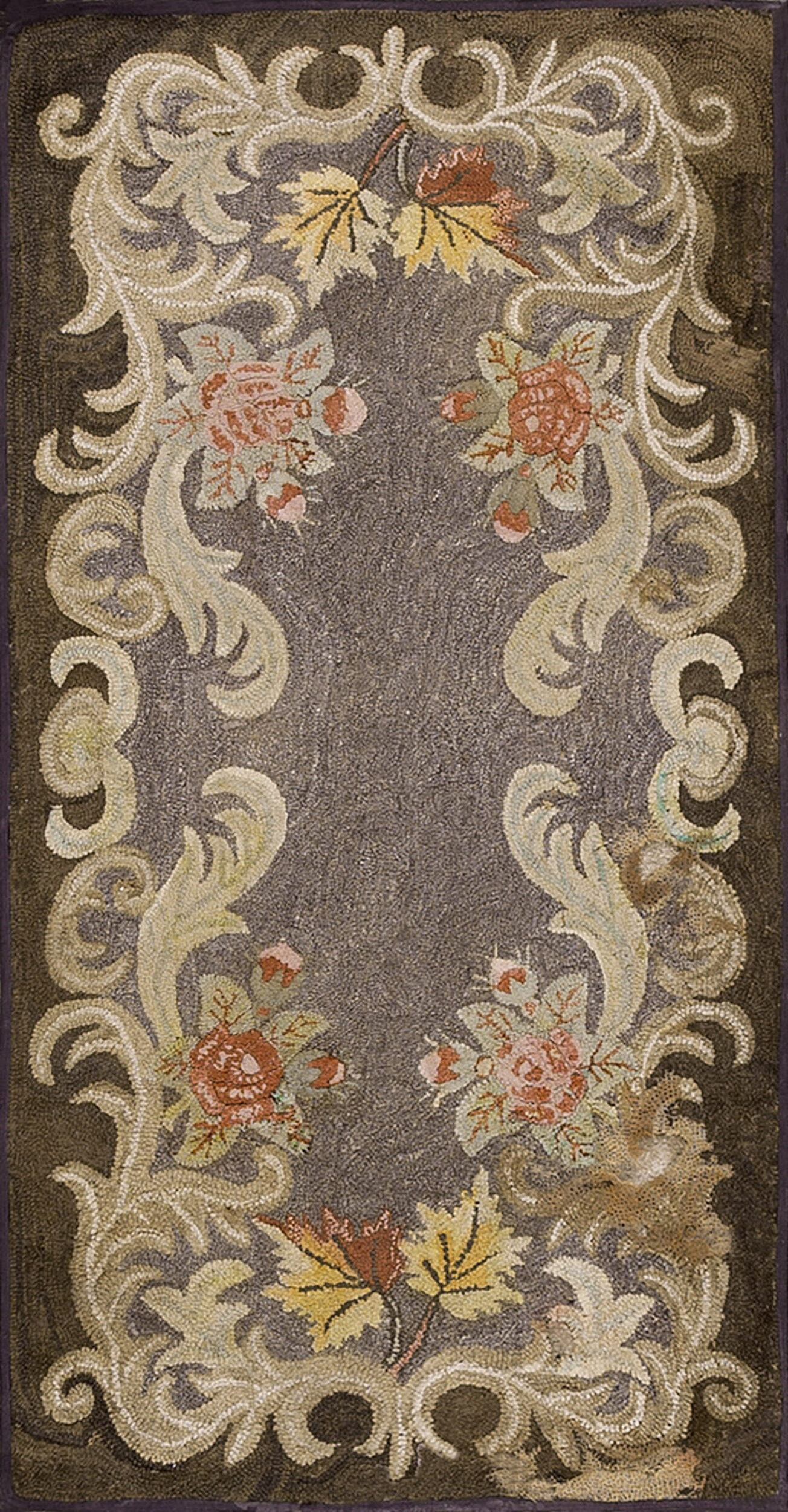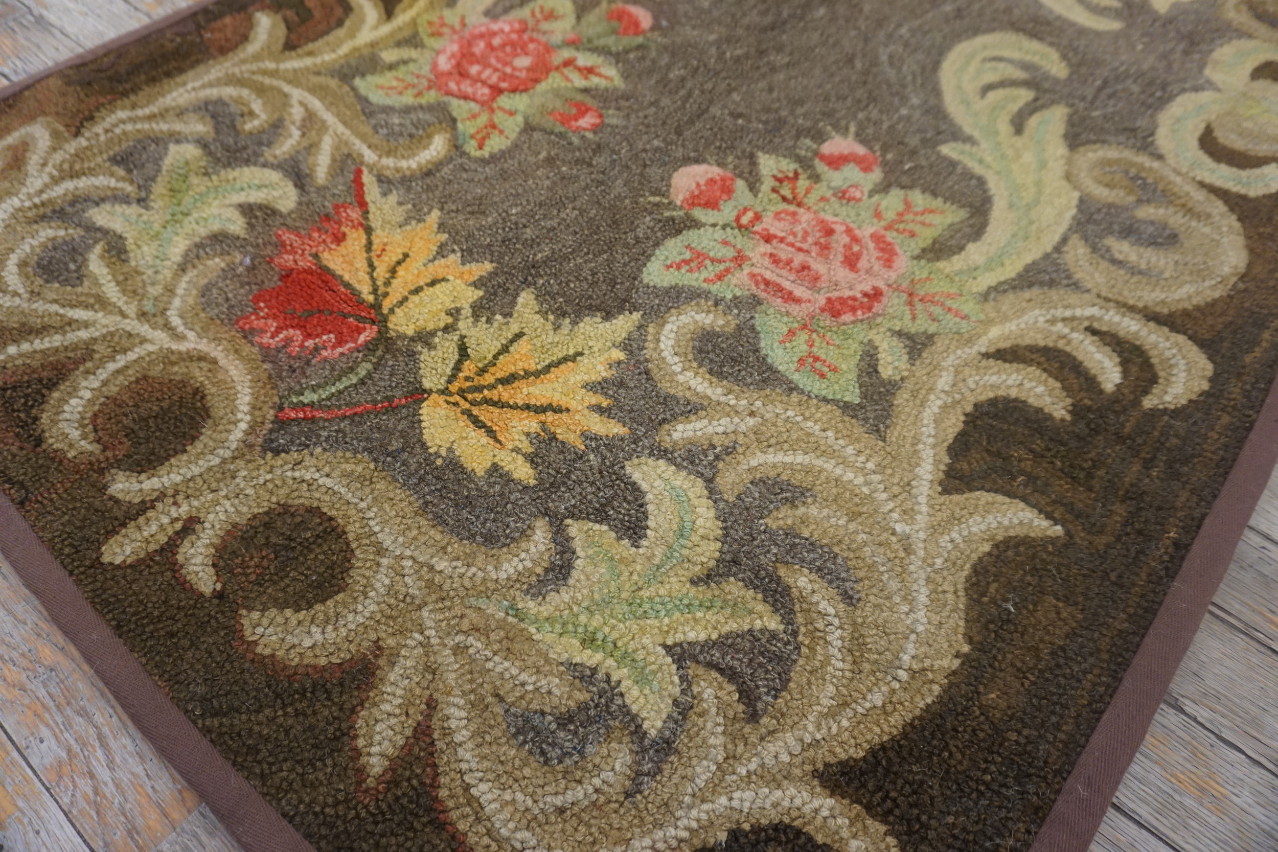 Antique American Hooked Rug American Brown 1925, Circa Date: 1925. This superb example of folk artistry is characteristic of the American Hooked Rug tradition, where dense, textural looping creates a rich surface quality highly valued by collectors of antique rugs.