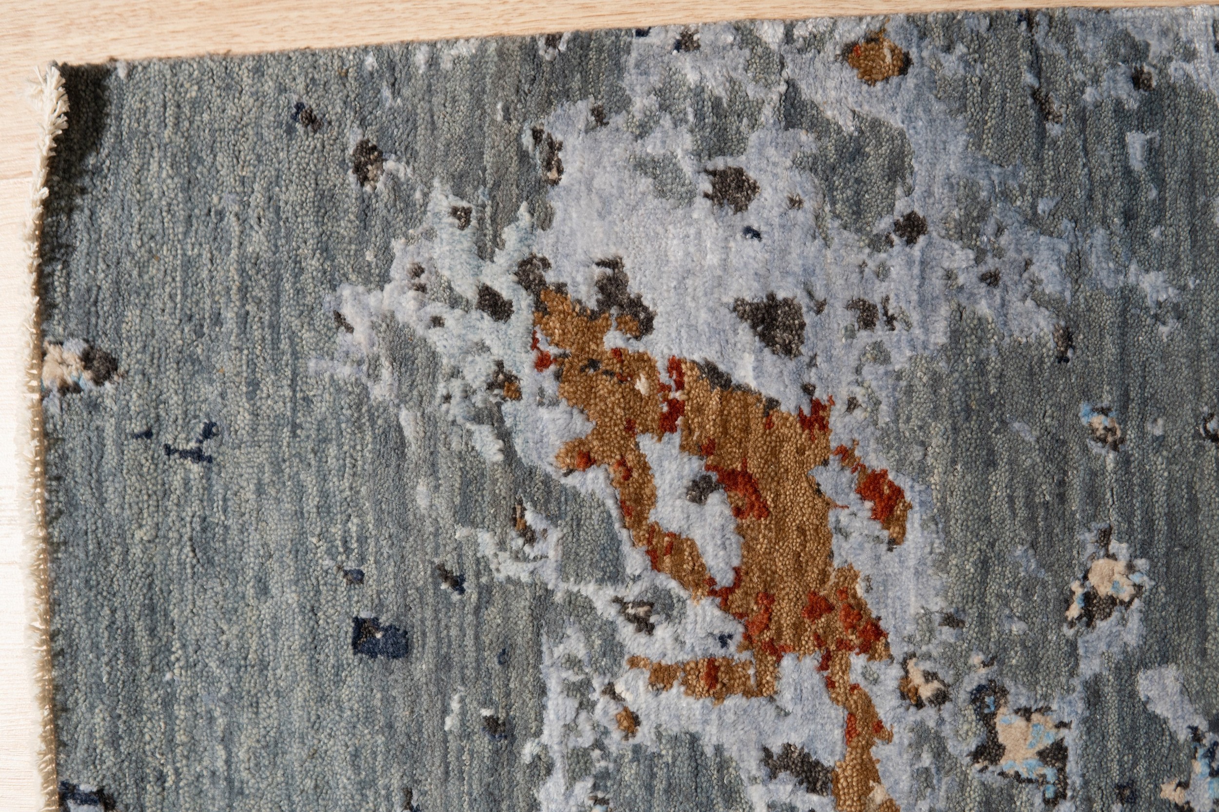 Hand-knotted from premium wool, the texture offers a luxurious, dense pile that softens the rug’s digital, distressed appearance. This artistic approach, reminiscent of abstract expressionism, ensures the rug acts as a powerful focal point in any room. We constantly update our inventory with the latest designs, including many new area rugs that push the boundaries of traditional weaving.