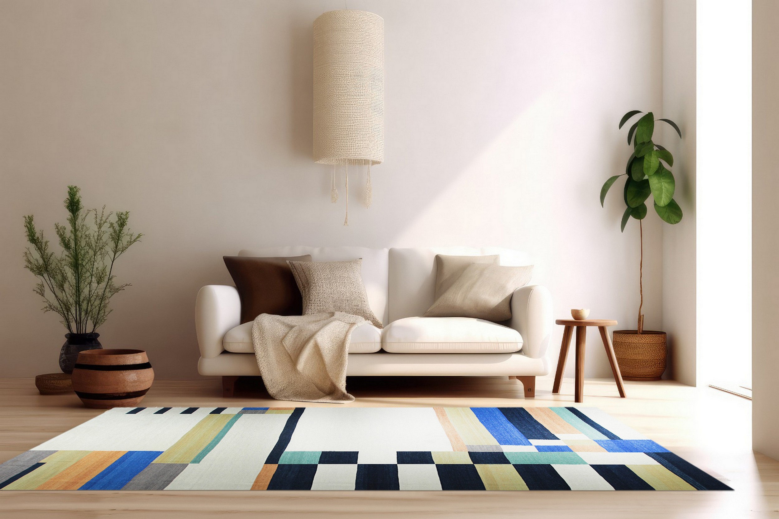 While the aesthetic leans decidedly modern, the hand-woven texture ensures a warmth and tactile quality often missing in machine-made pieces, allowing it to transition seamlessly between minimalist and eclectic interiors. Its structure and vibrant, yet controlled, coloration make it a compelling choice for those seeking new area rugs that serve as both floor covering and focal point.