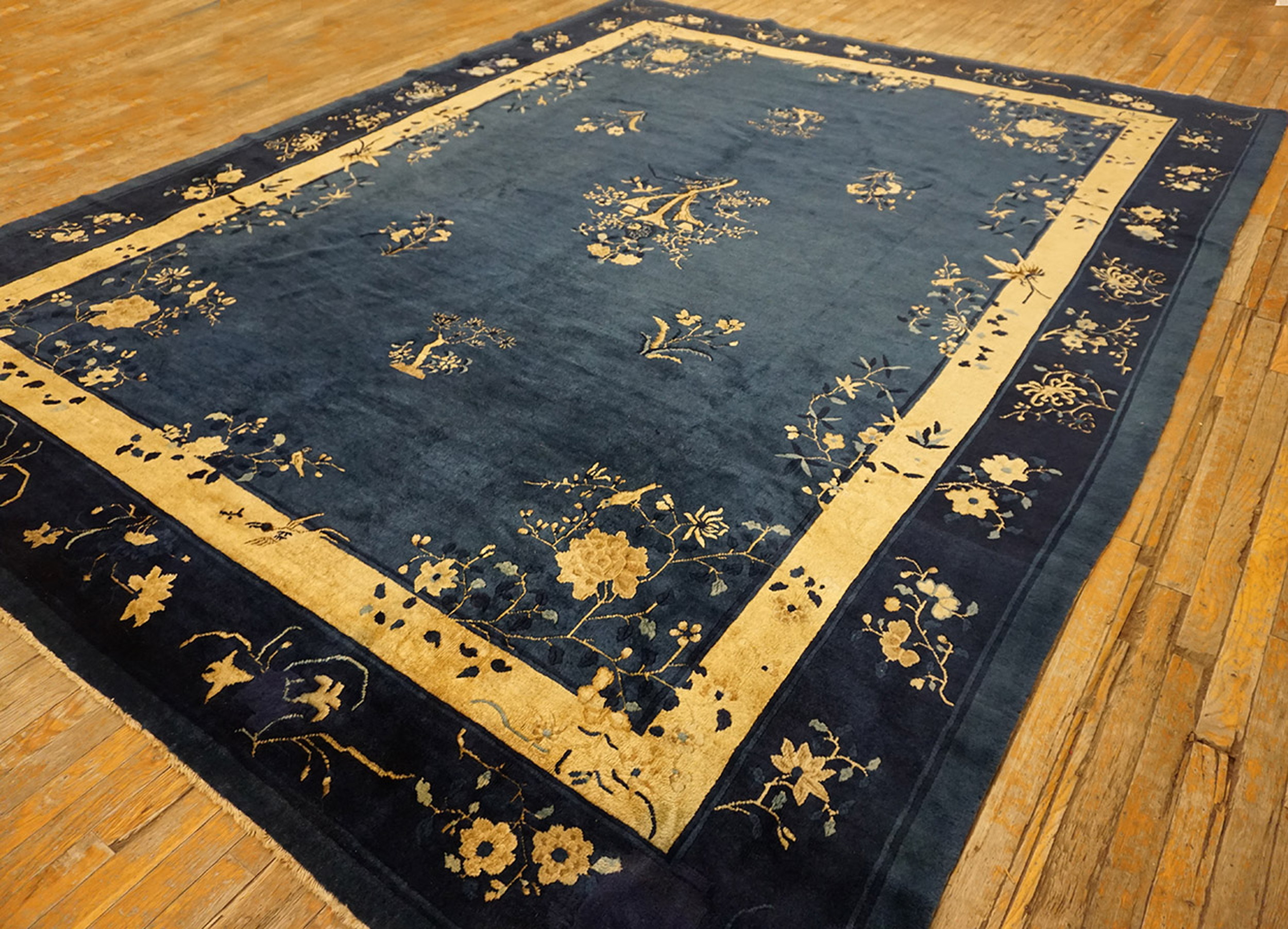 Chinese – Peking 1920s Blue Wool Knotted Antique Room Size Rectangle Rug