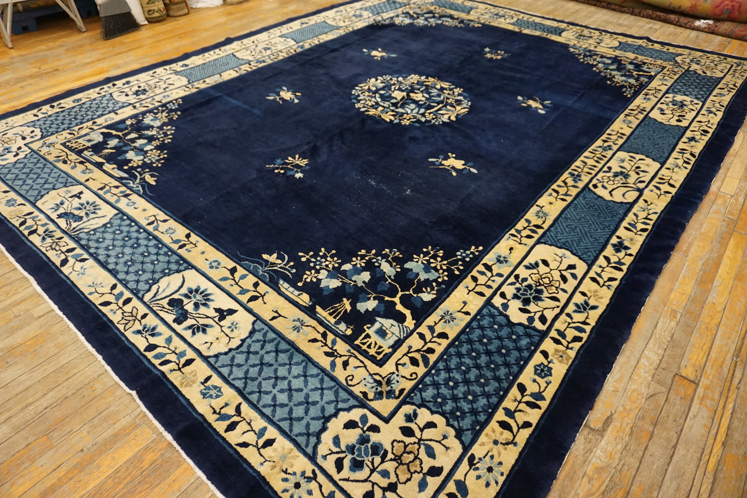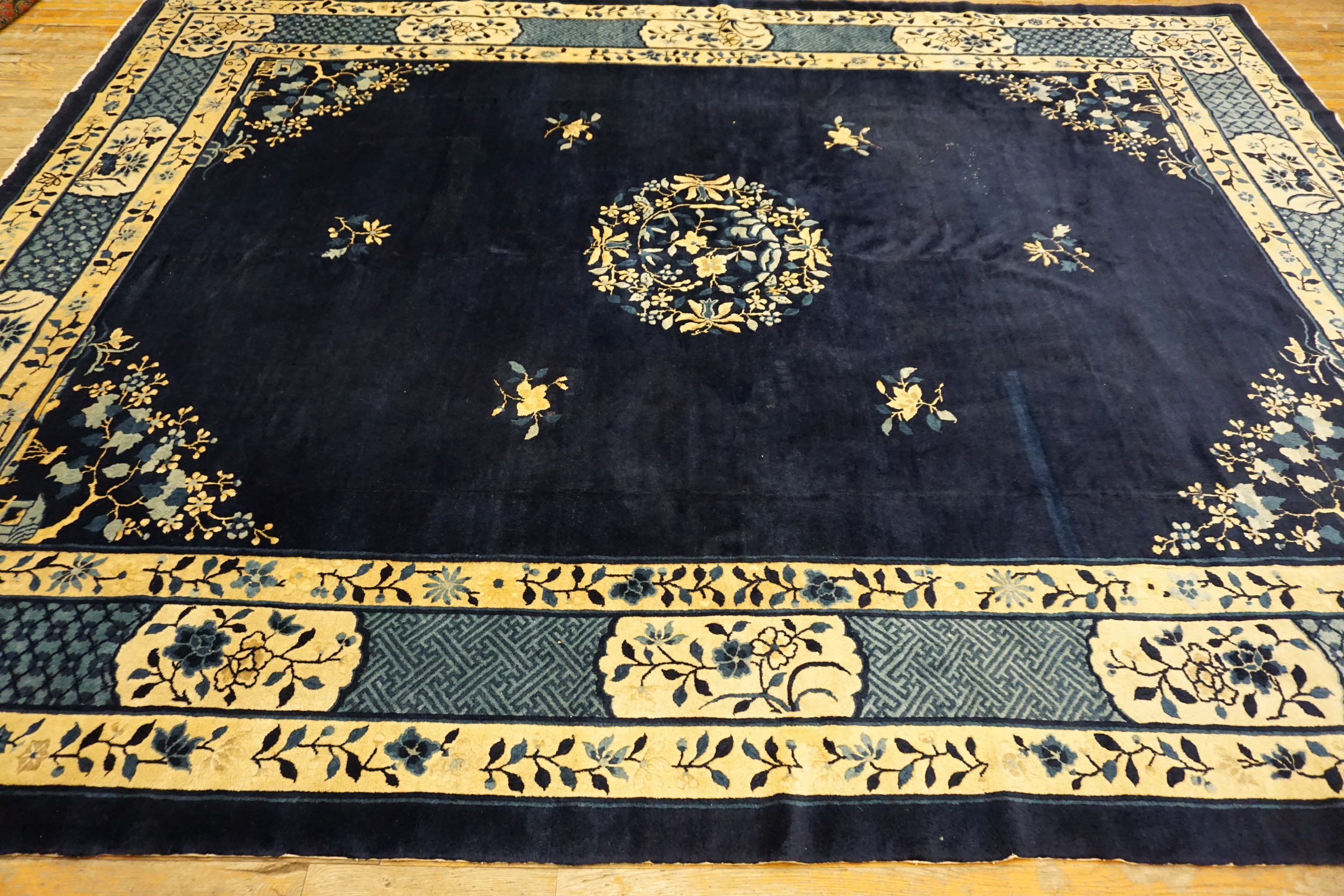 Chinese Rectangle 1900s Blue Knotted – Peking Antique Wool Room Size Rug, Circa Date: 1900s. This exceptional example of early 20th-century Chinese weaving represents the refined aesthetic of Peking production. Its provenance places it among the most sought-after antique rugs of the period, characterized by high-quality wool and dense knotting that speaks to superior craftsmanship.