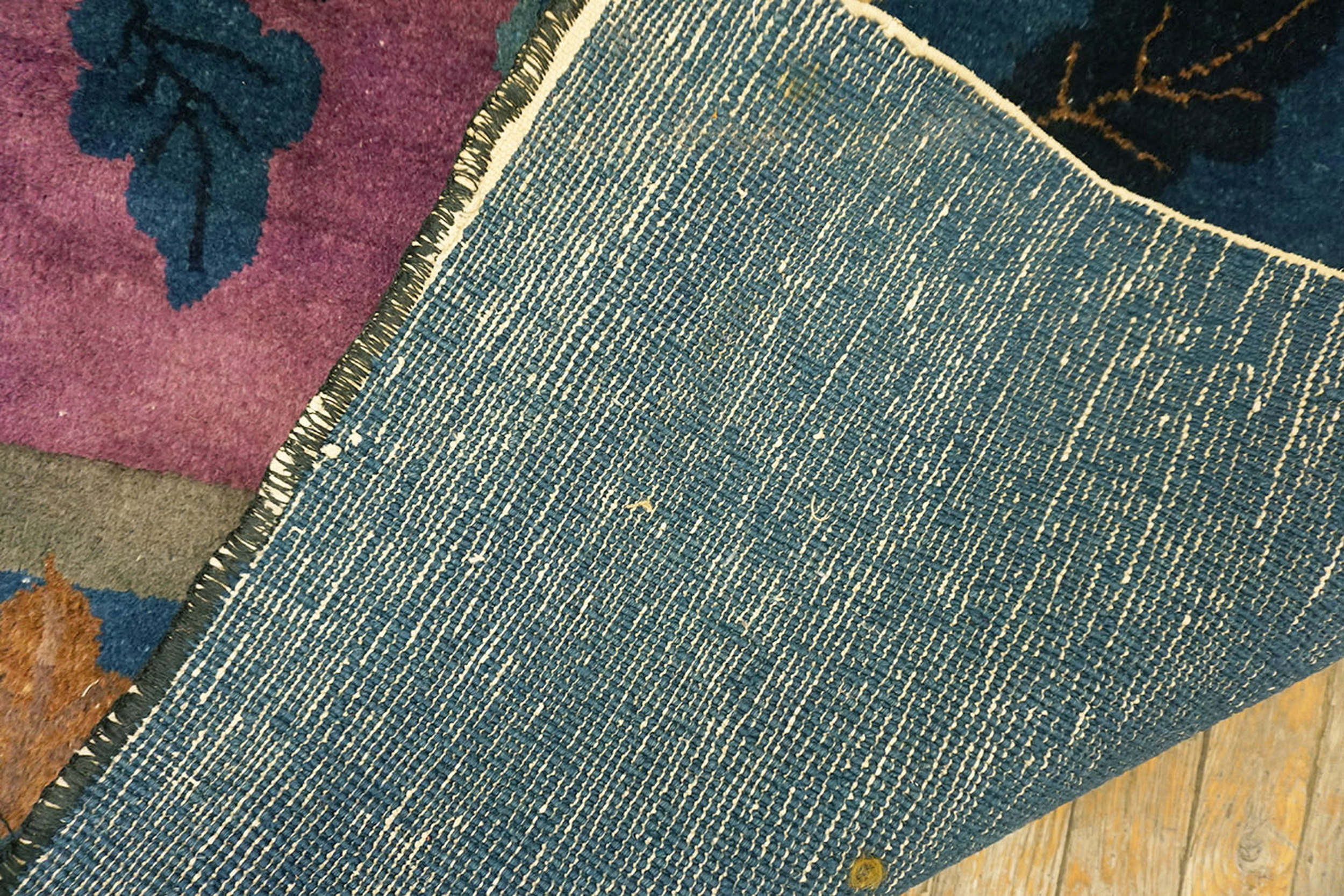 Chinese Rectangle Knotted Room Size Antique Purple Wool – Art Deco 1920s Rug, Circa Date: 1920s. This exceptional Chinese Art Deco piece exemplifies the bold aesthetic shift of the period, moving away from traditional dense patterns toward open, pictorial compositions. Its generous dimensions classify it as a true room size rug, ideal for anchoring a sophisticated living space.